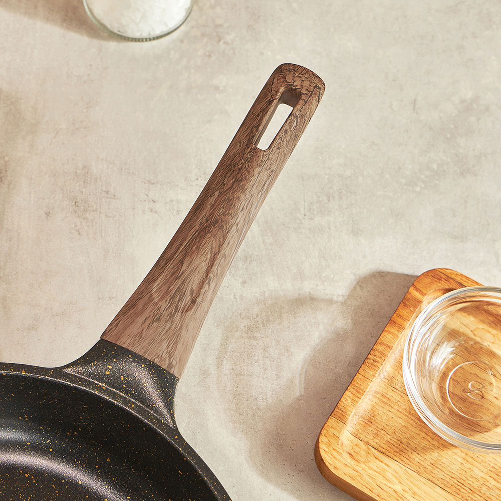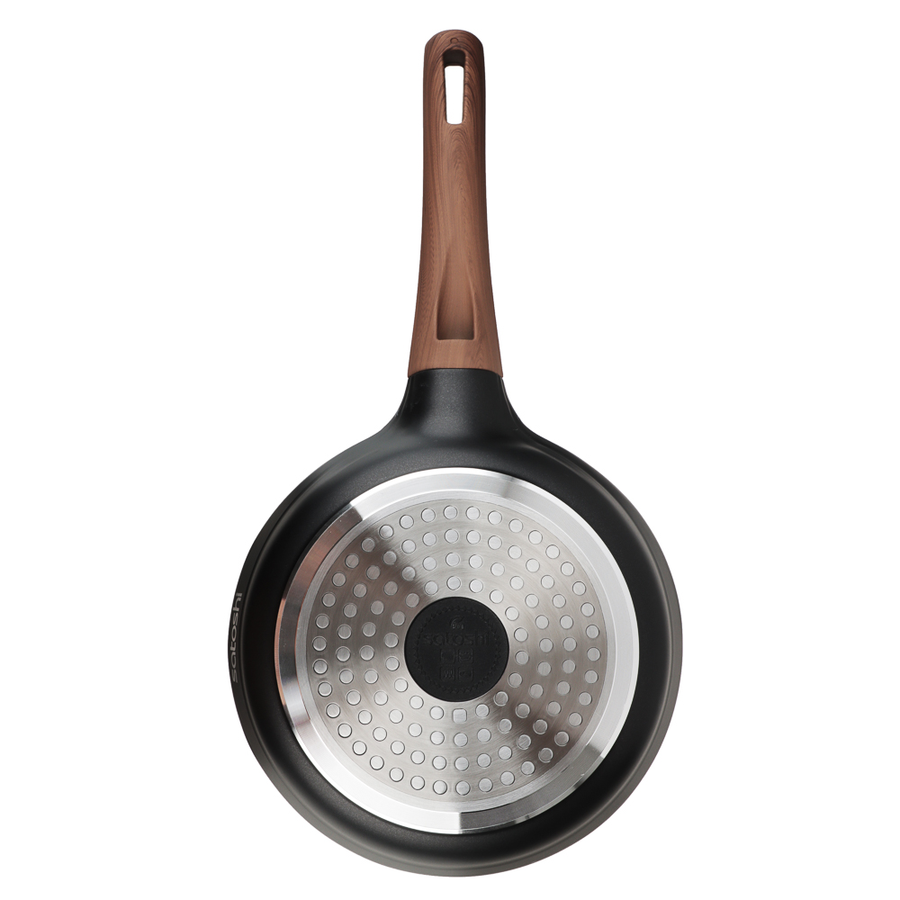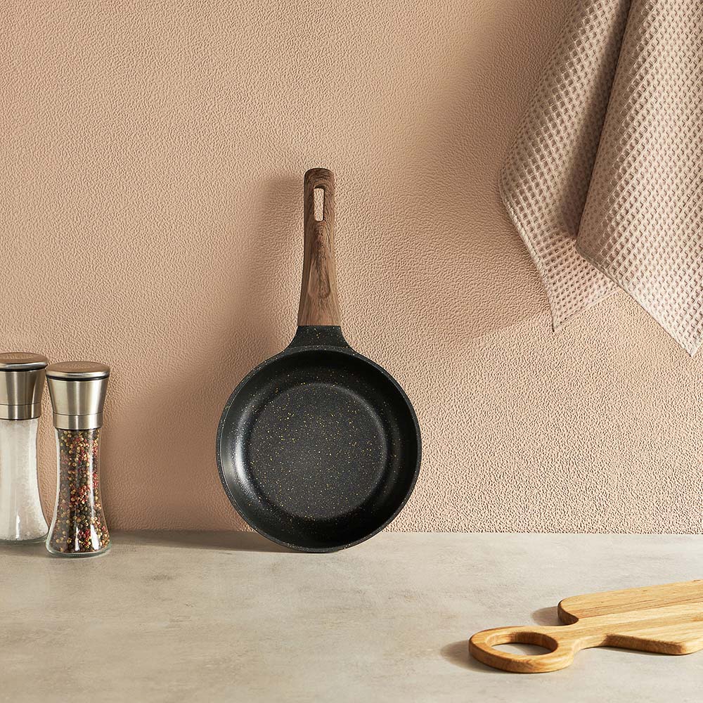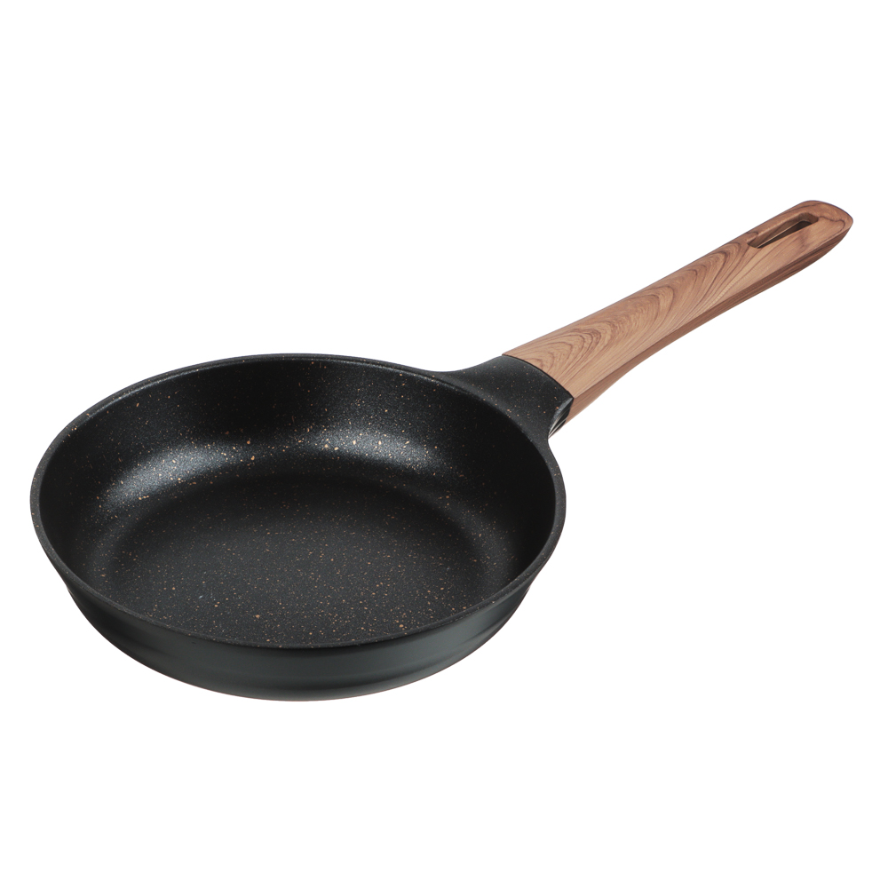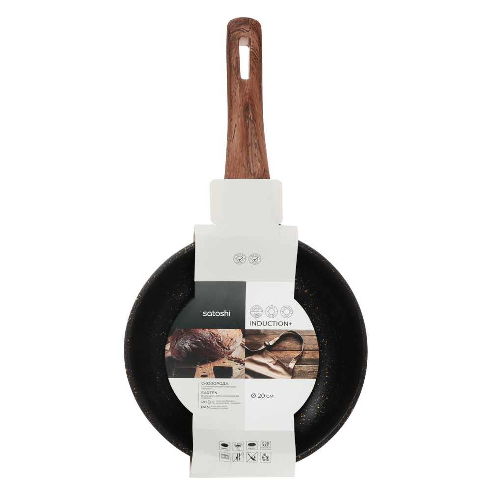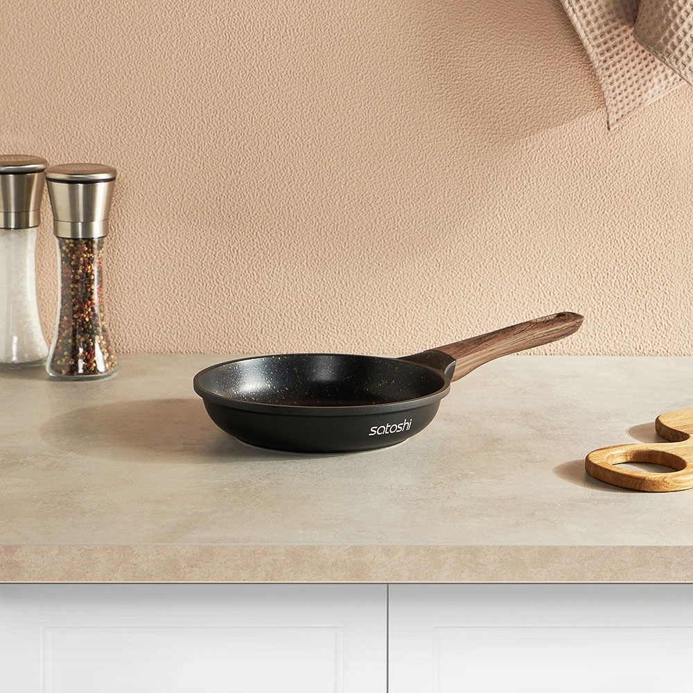 Сковорода SATOSHI Карнуа диаметром 20 см – это сочетание стиля и практичности. Литая из алюминия, она оснащена антипригарным мраморным покрытием, которое обеспечивает равномерное приготовление без пригорания. Бронзовые вкрапления на рабочей поверхности создают оригинальный и элегантный дизайн, который выделяется на вашей кухне. Эргономичная ручка с имитацией натурального дерева и покрытием soft-touch гарантирует комфортное использование – она не нагревается и не скользит. Сковорода совместима с индукционными плитами, что делает ее универсальной и удобной для ежедневного использования. Купить сковороду SATOSHI Карнуа – значить готовить с удовольствием!