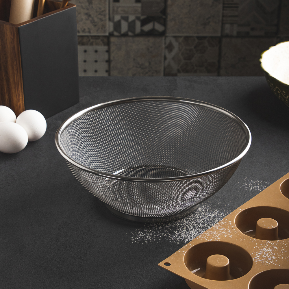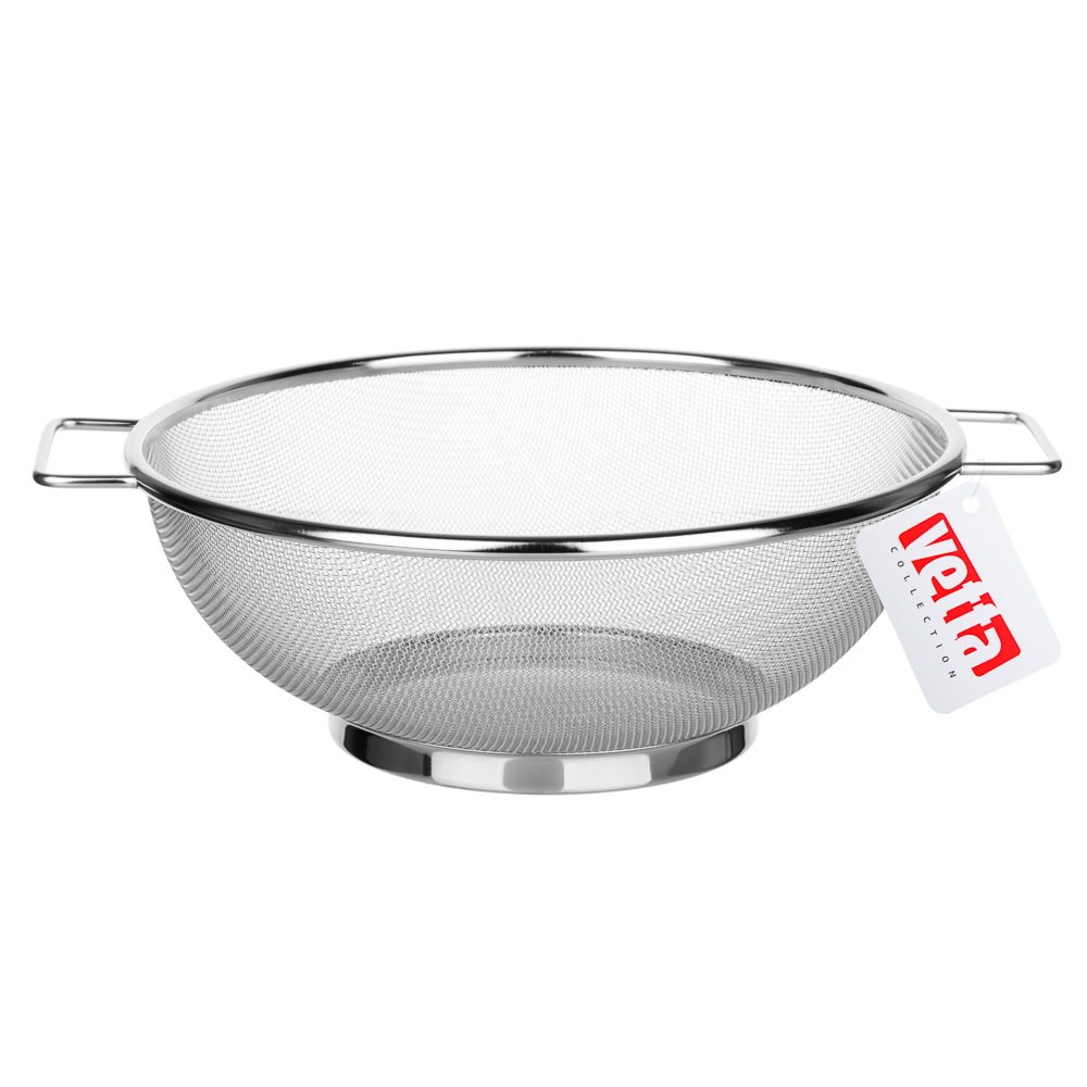 Сито на ножке из нержавеющей стали диаметром 24 см отлично подходит для отделения жидкости от твердых частиц в продуктах. Имеет прочную конструкцию с ножкой для устойчивости и ручкой для удобства использования. Сито имеет множество отверстий, что позволяет эффективно просеивать продукты. Благодаря нержавеющей стали, сито легко моется и не ржавеет со временем.