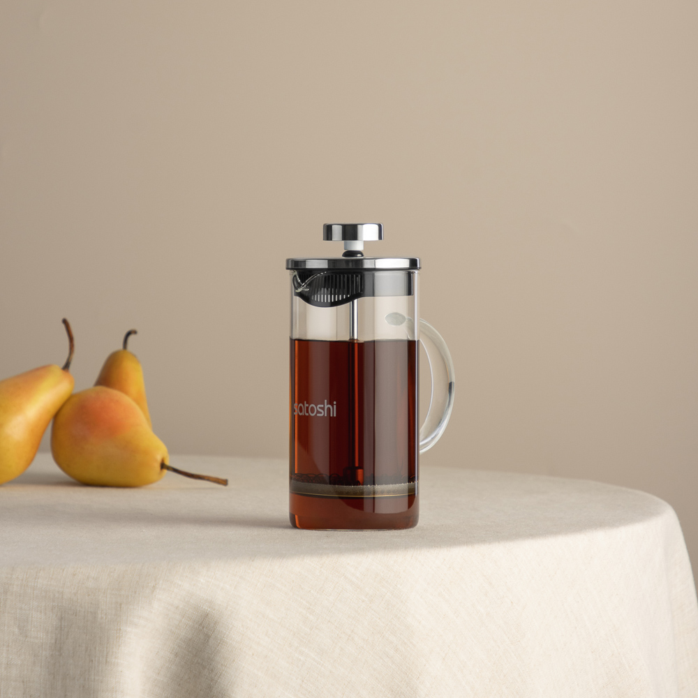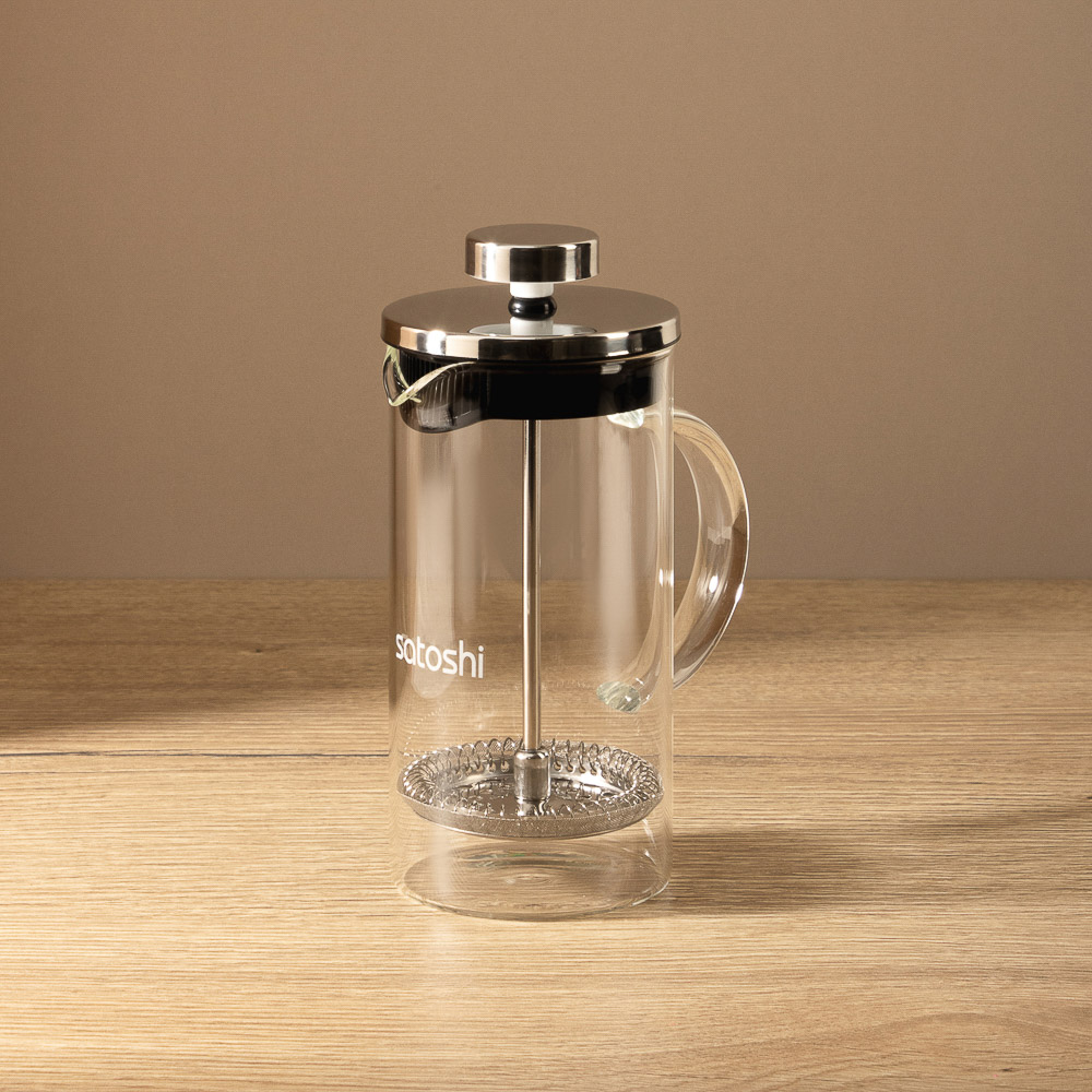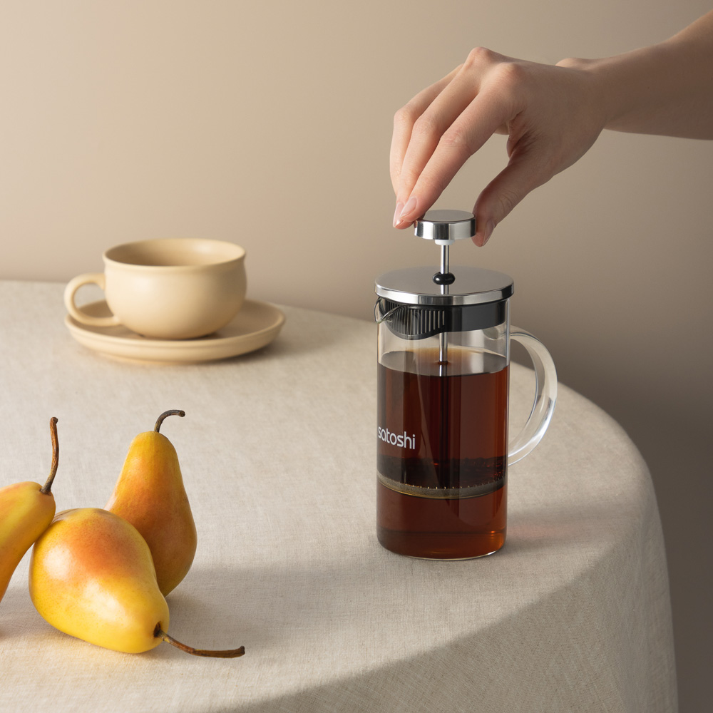 Френч-пресс SATOSHI "Тэмму" 350 мл — компактное и технологичное решение для приготовления идеального кофе. Колба из жаропрочного стекла объёмом 350 мл сохраняет тепло и аромат напитка, обеспечивая насыщенный вкус. Фильтр-поршень из нержавеющей стали с двойной сеткой гарантирует чистое прессование без частиц кофейной гущи. Крышка со встроенным сливным фильтром позволяет наливать напиток без снятия поршня. Устройство полностью разбирается и подходит для мытья в посудомоечной машине. Сочетание функциональности и стильного дизайна отвечает потребностям самых взыскательных пользователей.