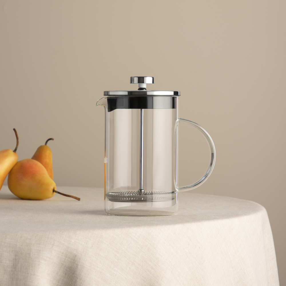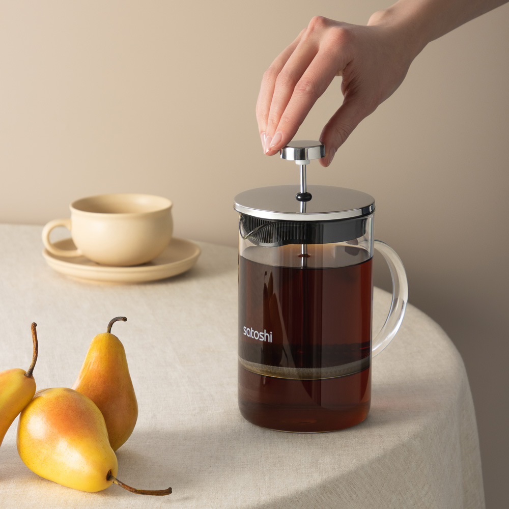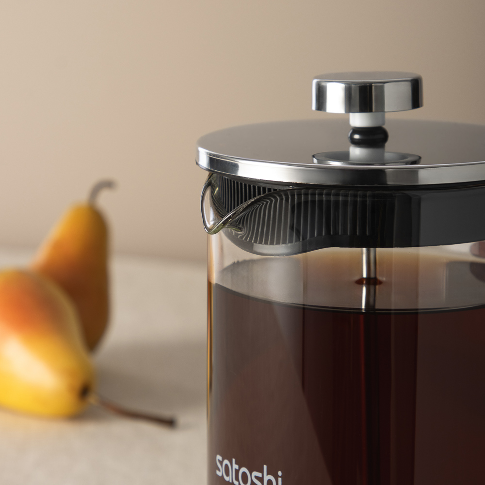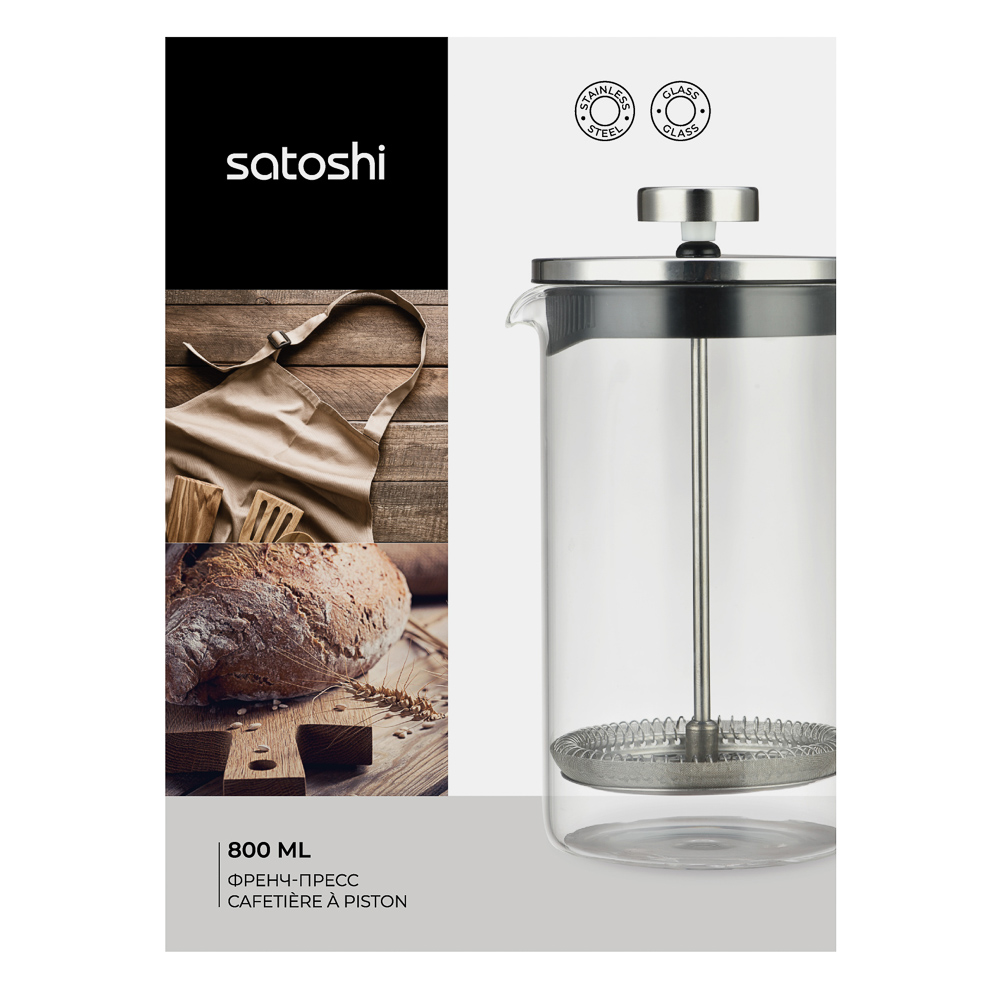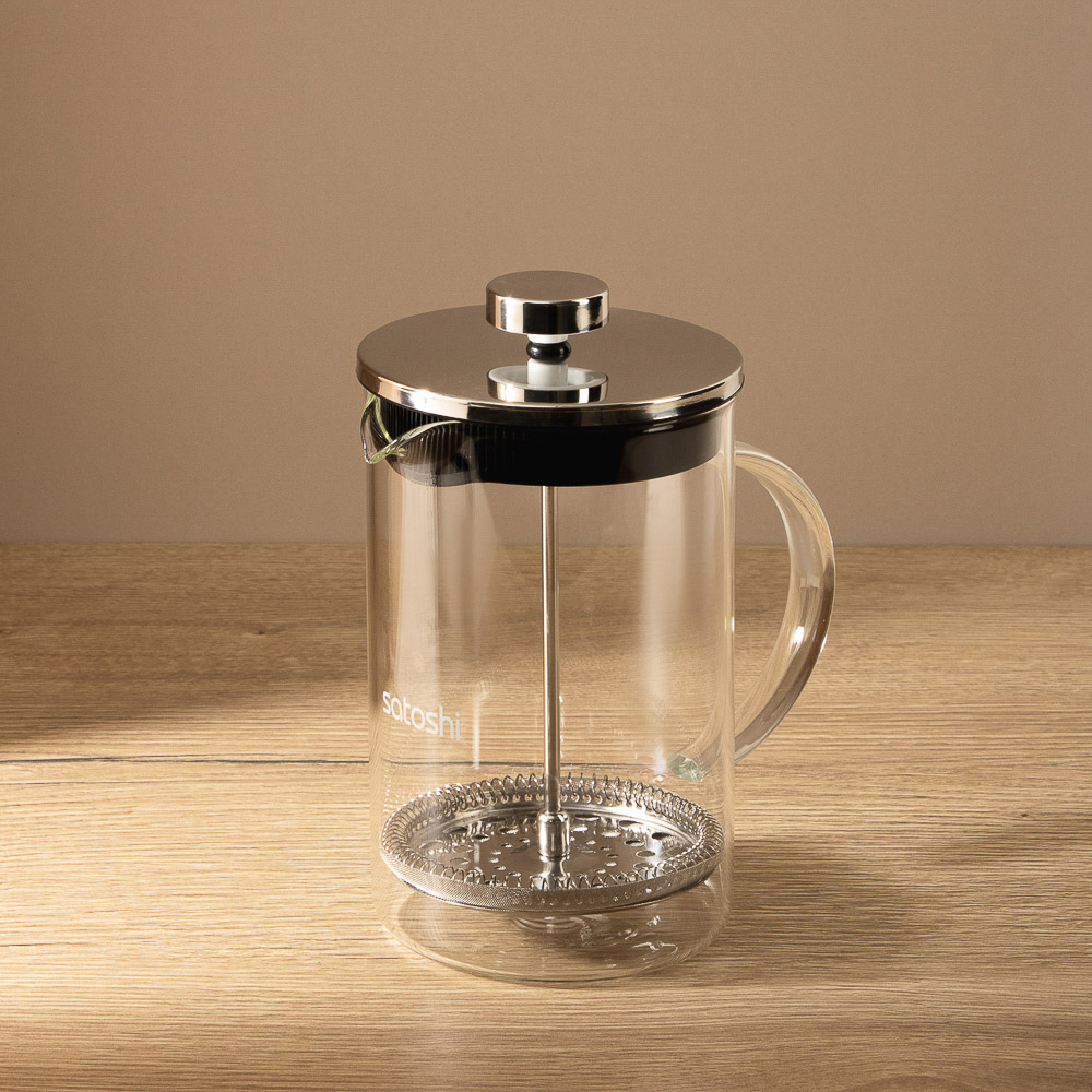 Френч-пресс SATOSHI Тэмму объемом 800 мл в стеклянном корпусе, с фильтрующим поршнем из нержавеющей стали, подходит для заваривания кофе и чая.