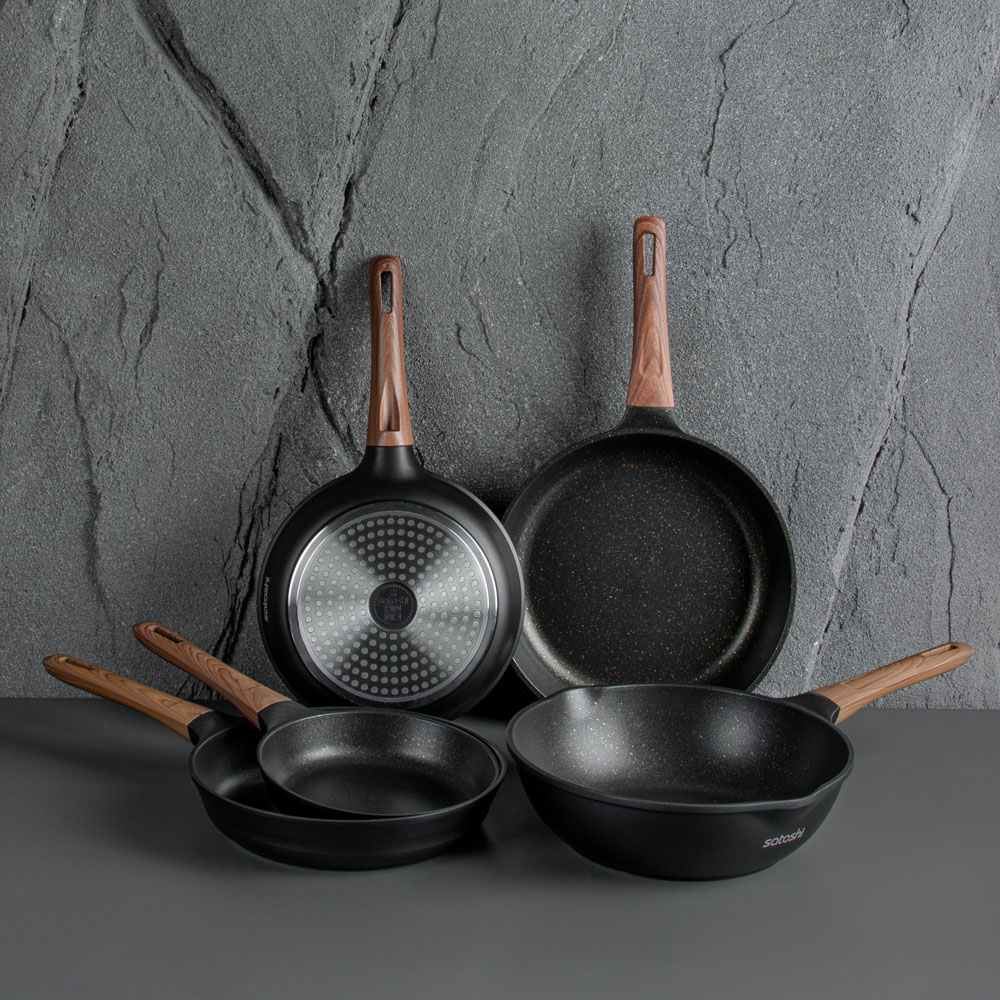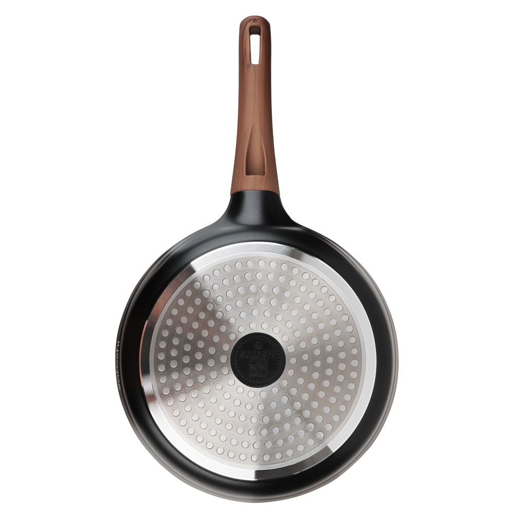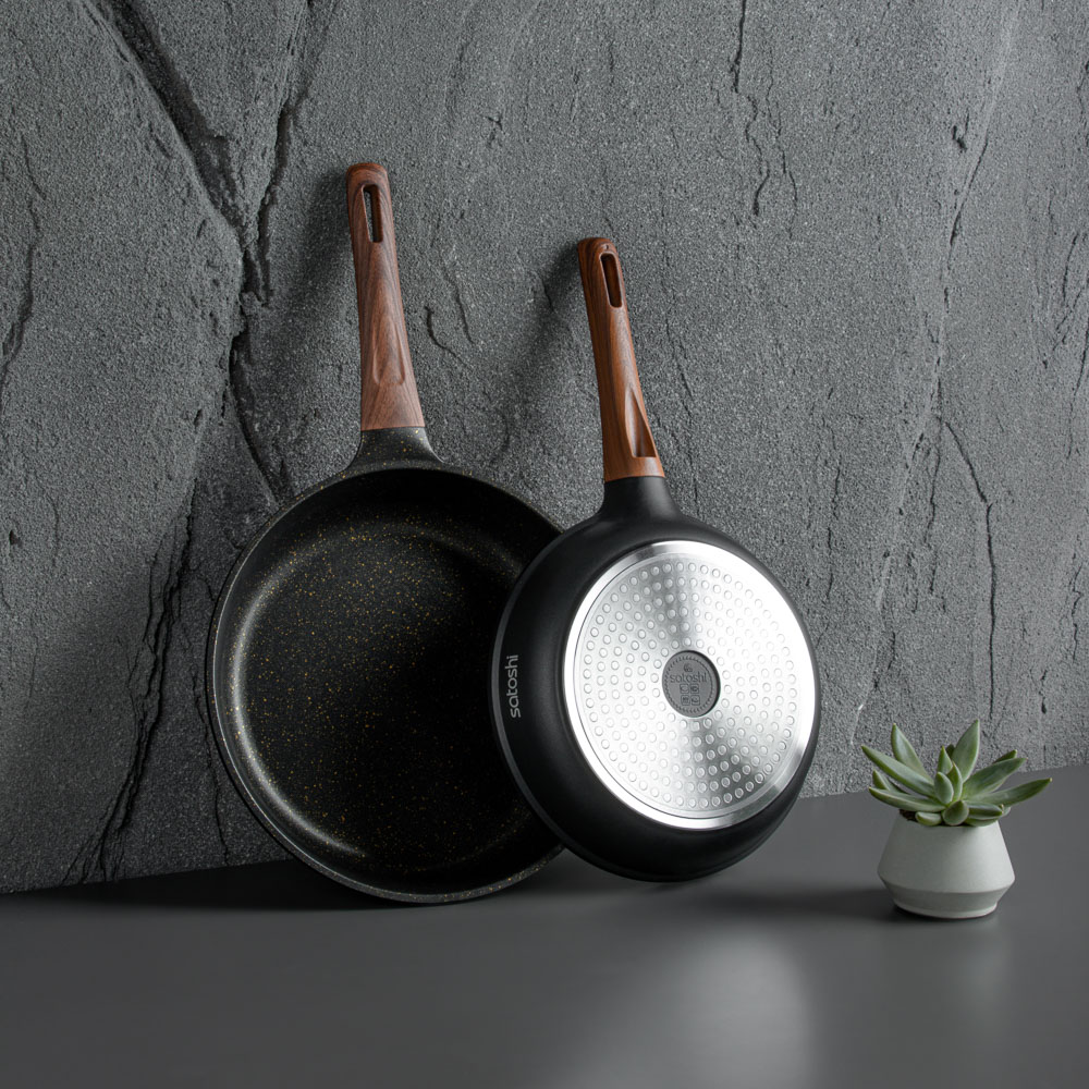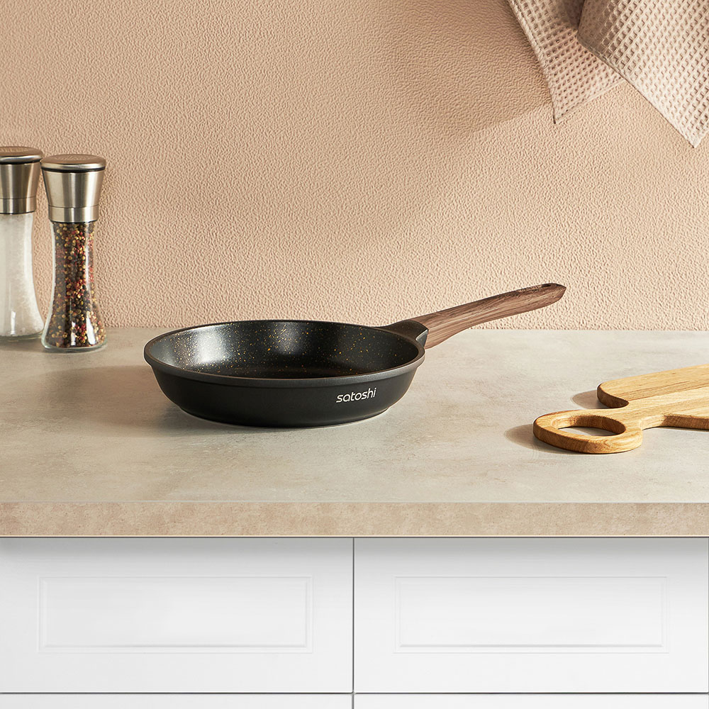 Сковорода SATOSHI Карнуа диаметром 24 см – это сочетание стиля и практичности. Литая из алюминия, она оснащена антипригарным мраморным покрытием, которое обеспечивает равномерное приготовление без пригорания. Бронзовые вкрапления на рабочей поверхности создают оригинальный и элегантный дизайн, который выделяется на вашей кухне. Эргономичная ручка с имитацией натурального дерева и покрытием soft-touch гарантирует комфортное использование – она не нагревается и не скользит. Сковорода совместима с индукционными плитами, что делает ее универсальной и удобной для ежедневного использования. Купить сковороду SATOSHI Карнуа – значить готовить с удовольствием!