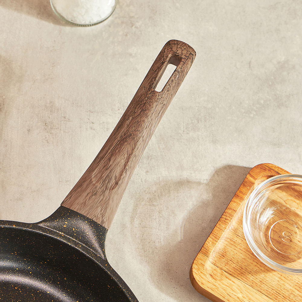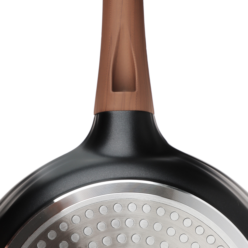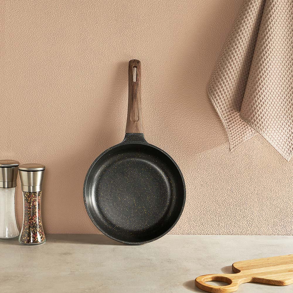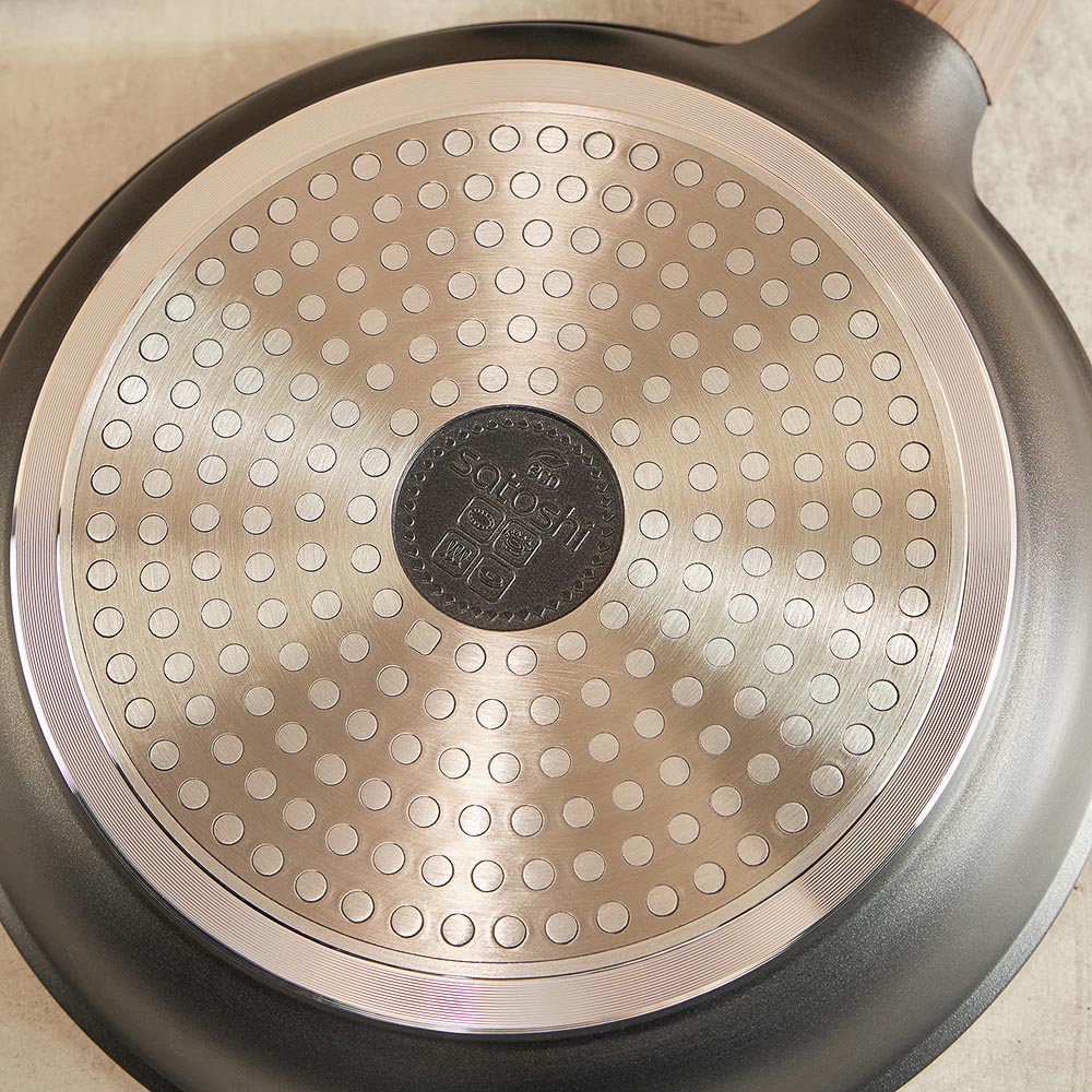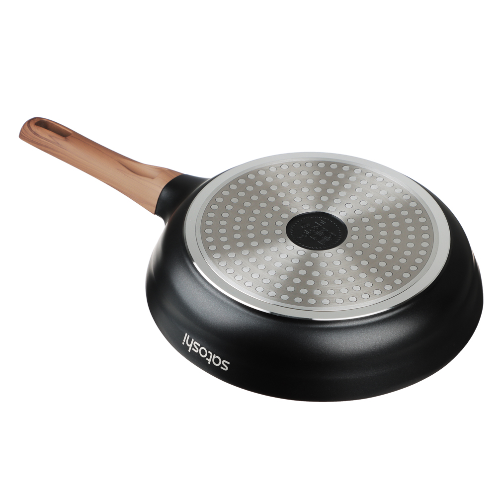 Сковорода SATOSHI Карнуа диаметром 24 см – это сочетание стиля и практичности. Литая из алюминия, она оснащена антипригарным мраморным покрытием, которое обеспечивает равномерное приготовление без пригорания. Бронзовые вкрапления на рабочей поверхности создают оригинальный и элегантный дизайн, который выделяется на вашей кухне. Эргономичная ручка с имитацией натурального дерева и покрытием soft-touch гарантирует комфортное использование – она не нагревается и не скользит. Сковорода совместима с индукционными плитами, что делает ее универсальной и удобной для ежедневного использования. Купить сковороду SATOSHI Карнуа – значить готовить с удовольствием!