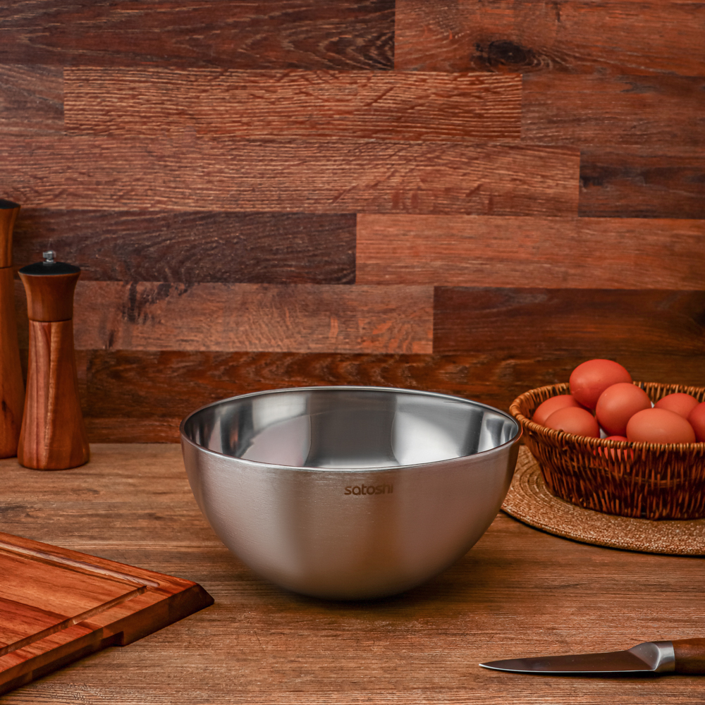 Глубокий салатник SATOSHI из нержавеющей стали прекрасно подходит не только для салатов, но также и для приготовления маринадов, теста, фарша. Имеет легкий вес, устойчивый и хорошо моется. Благодаря своей углубленной форме содержимое легко перемешивается, не вываливаясь за края. Удобная посуда на каждый день, а также для пикника. Диаметр – 24 см.