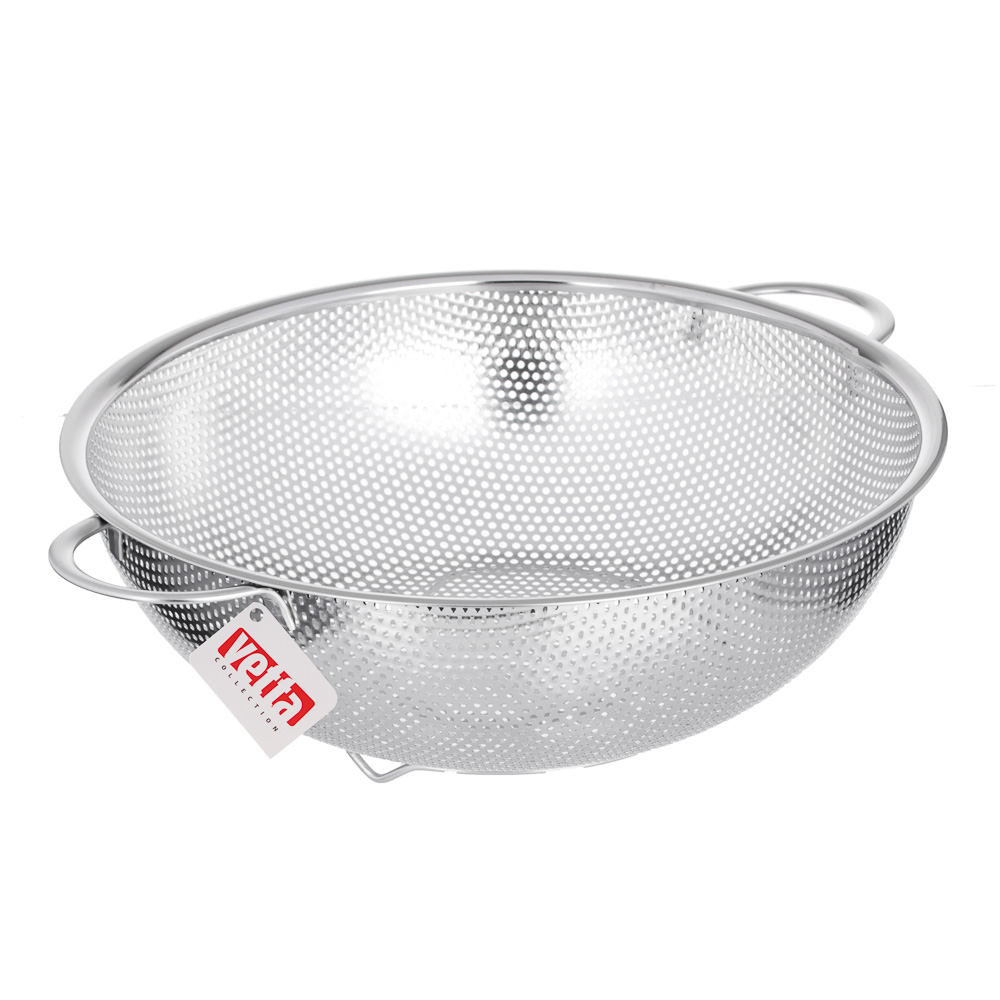 Кухонная утварь должна быть максимально функциональной и качественной, ведь она используется каждый день. Дуршлаг на ножке из нержавеющей стали VETTA Эстин – это практичный вариант, который позволяет оставить изделие в раковине без необходимости держать его в ожидании, когда стечет вся вода. Удобные ручки позволяют разместить дуршлаг над чашкой или кастрюлей, а также помогают при переноске. Диаметр – 28 см.