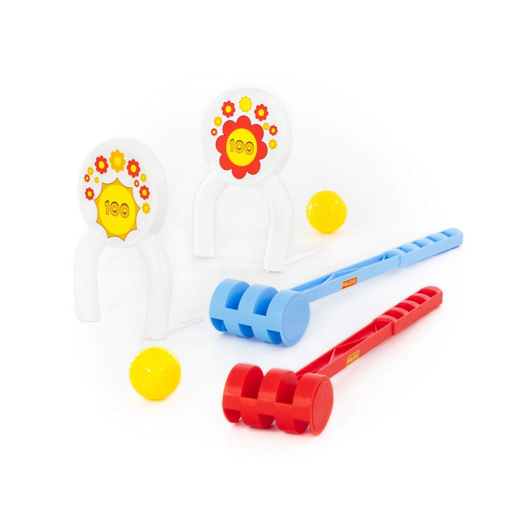 Игровой набор «Крокет» позволит ребёнку чаще проводить время на свежем воздухе. В набор входят два молоточка, два мячика и ворота для крокета с изображением заработанных очков. Игра «Крокет» развивает координацию движений, меткость ребёнка, способствует улучшению его физической формы и прививает любовь к активным играм. Такие игрушки также помогают ребёнку развить умение играть в команде. Функции игрового набора: развивает силу, ловкость, меткость и формирует зрительно-моторную координацию.