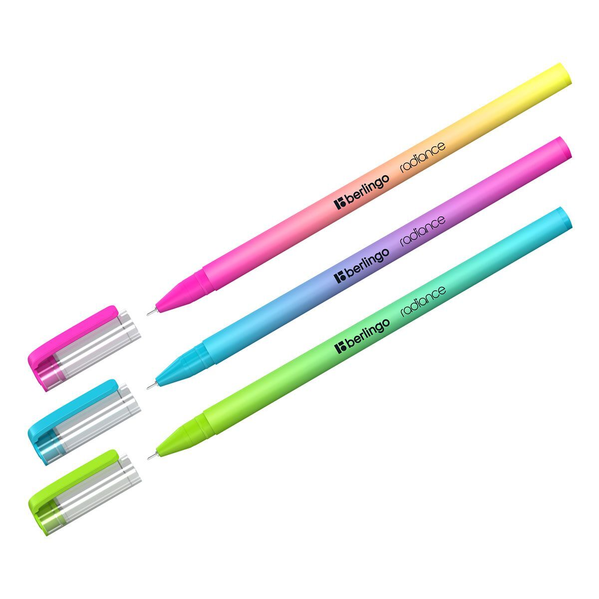 Шариковая ручка из кросс-серии Berlingo Radiance несет в себе тренд сезона – неоновый градиент. Комбинация этого эффекта с покрытием soft-touch делают эту ручку модным канцелярским аксессуаром. Ручка представлена с пластиковым прозрачным клипом на колпачке. Диаметр пишущего узла составляет 0,7 мм, благодаря чему ручка прекрасно подходит для любого стиля письма. Уникальная технология Smart Ink обеспечивает лёгкое и приятное письмо за счёт использования чернил пониженной вязкости, специальной конструкции пишущего узла и инновационных материалов шарика. • Технология Smart Ink; • Цвет чернил: синий; • Толщина линии письма: 0,5 мм; • Длина письма: 1000 метров; • Цвет корпуса: микс из 3-х дизайнов.