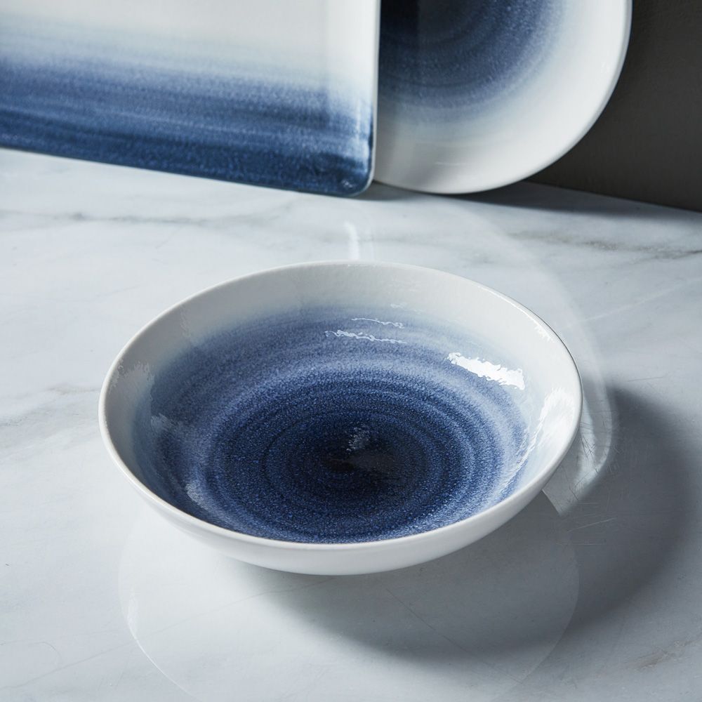 Фарфоровый салатник "Юнивёрс" 21х21х5 см от IVLEV CHEF – это универсальная посуда для сервировки. Благодаря своей форме в виде низкой и широкой тарелки он подойдет для подачи как классических, так и многослойных салатов, заливного, гарниров, а также фруктов. Светлые цвета – синий и белый и градиент на внешней части изделия смотрятся изящно и лаконично. Изделие выполнено из фарфора высокого качества – на поверхности не образуется царапин, посуда долго сохраняет идеальный вид и блеск.