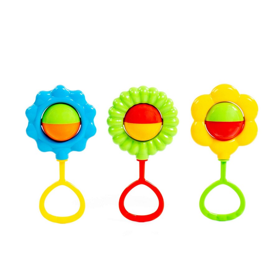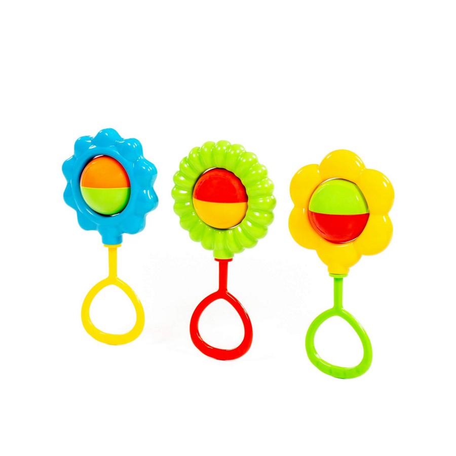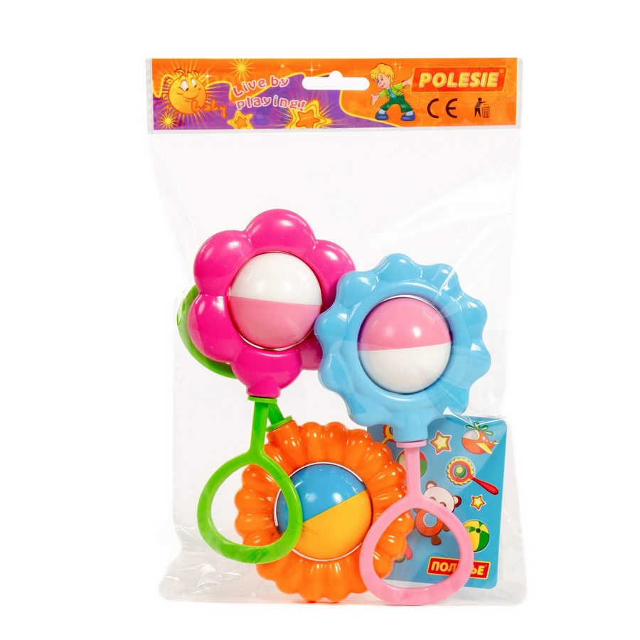 Набор погремушек Цветочек 45638 Полесье включает в себя 3 игрушки-грохотушки: василёк, ромашку и хризантему. Каждая игрушка оснащена удобной ручкой и подвижным шариком. Размер упаковки 170 ? 145 ? 45 мм