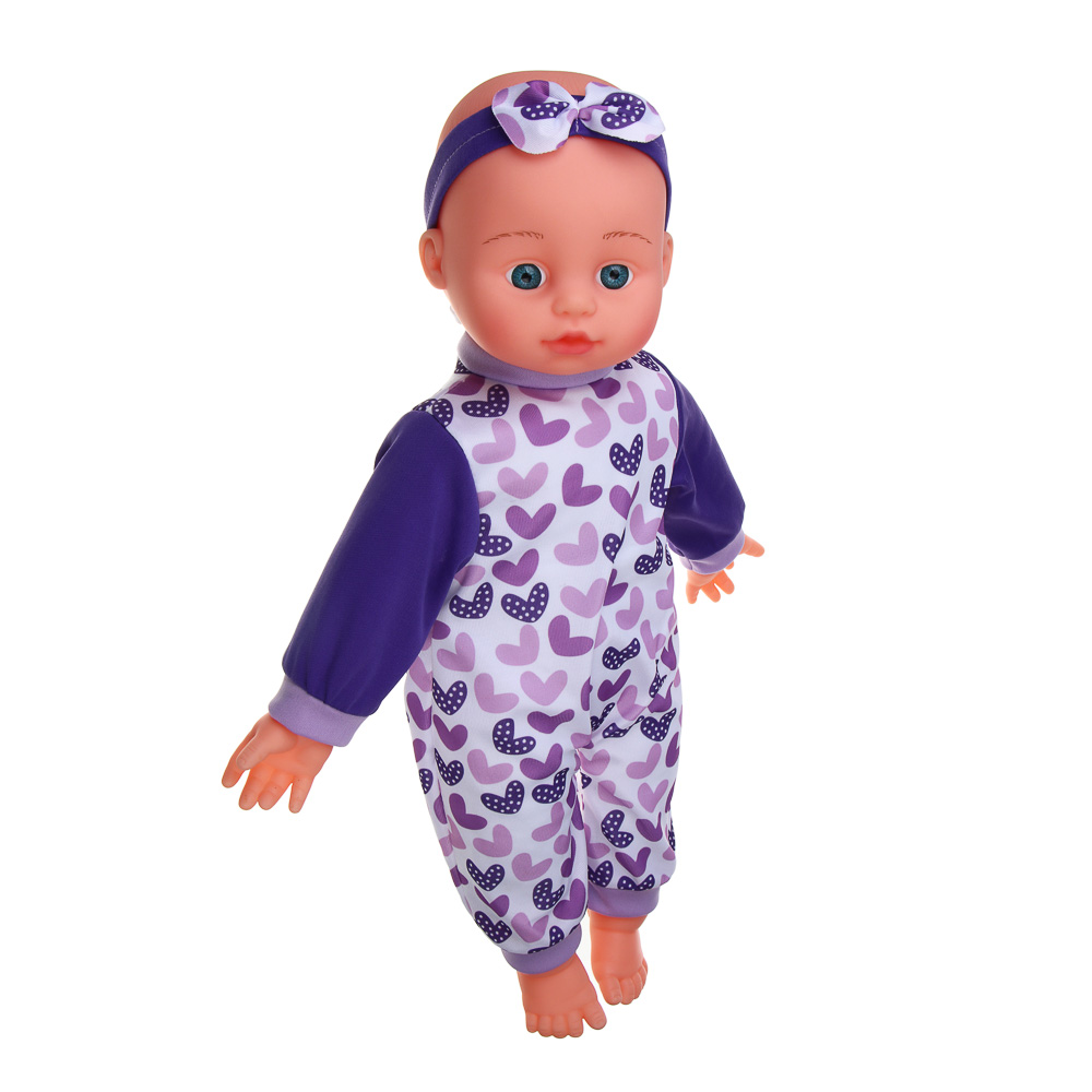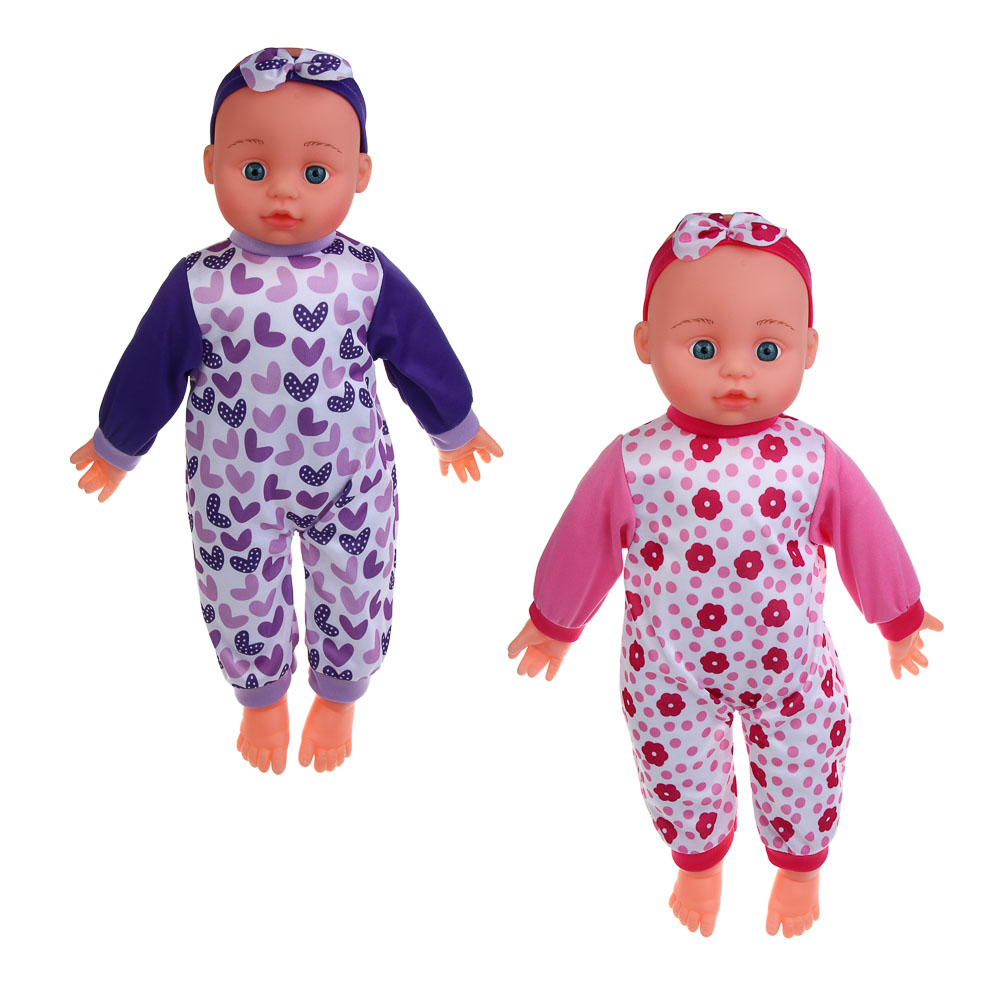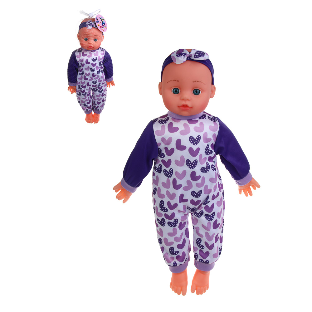 Милая кукла-пупс в очаровательной шапочке и костюмчике станет любимой игрушкой любой девочки. Мягкий пупс длиной 50 см с прекрасно прорисованным лицом выглядит очень реалистично. В ассортименте представлено несколько вариантов дизайна куклы с разным выражением лица и цветом костюмчика. Эти неповторимые пупсы станут идеальными компаньонами вашего ребенка во всех их игровых приключениях.