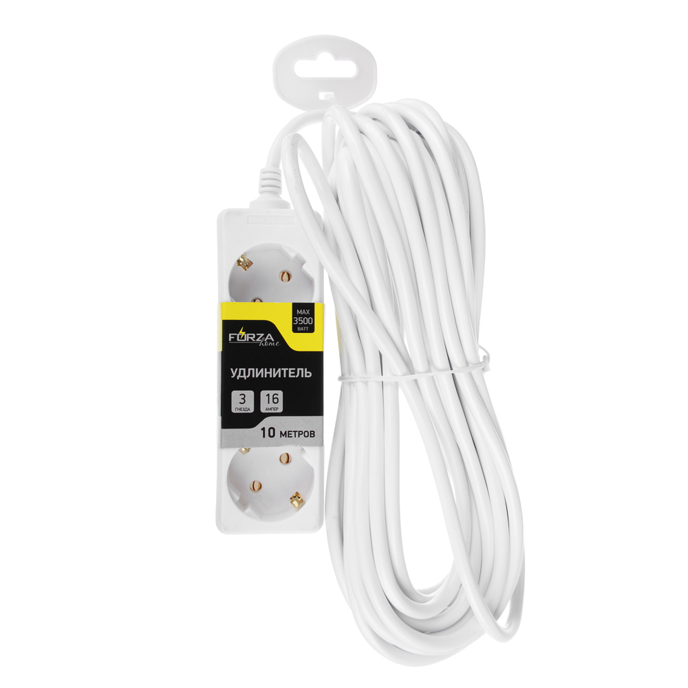 FORZA Удлинитель 3 гнезда, 10м, с зазем 16А, 3500Вт