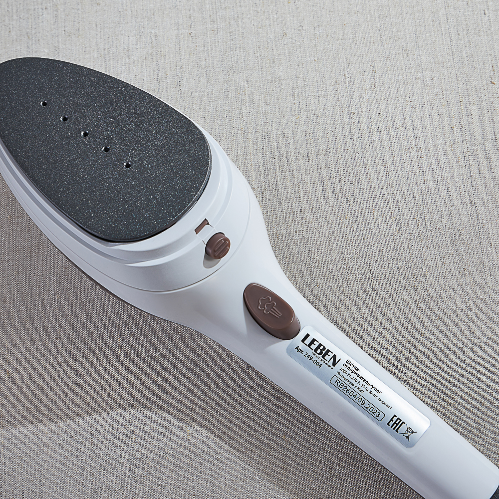 Щетка-отпариватель-утюг LEBEN — многофункциональный прибор, который поможет вам быстро и легко освежить одежду и привести ее в презентабельный вид. В отличие от обычного утюга прибор мобилен и имеет компактные габариты, поэтому его удобно брать с собой в дорогу. Утюг легок в скольжении, а функция отпаривания помогает справиться даже с самыми глубокими складками. Благодаря терморегулятору прибор деликатен к тканям, не оставляет на одежде следов и заломов. Нержавеющая сталь, из которой изготовлена подошва утюга, делает ее прочной и устойчивой к повреждениям. Такой прибор станет незаменимым помощником в каждом доме.