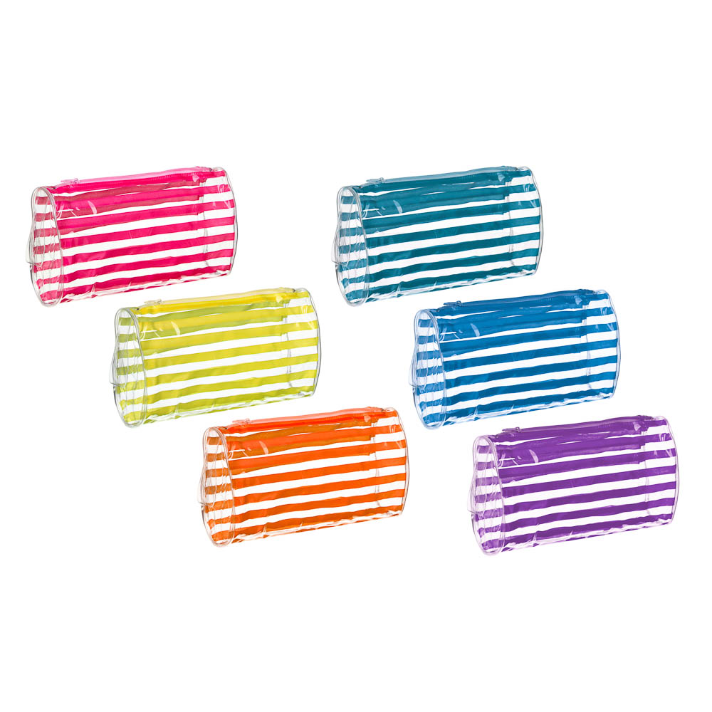 Косметичка банная от бренда ЮL серии «Полоски» предназначена для хранения и переноски банных принадлежностей. Органайзер размером 22х12.5х5.5 см изготовлен из прозрачного пвх со стильным принтом в полоску, который отлично держит форму и легко моется в случае загрязнения. Косметичка имеет овальную форму и застегивается с помощью молнии. Благодаря удобной боковой ручке косметичку легко переносить и брать с собой в душ, баню, бассейн или спортзал. В серии представлено 3 ярких цветовых решения: розовый, желтый и оранжевый.