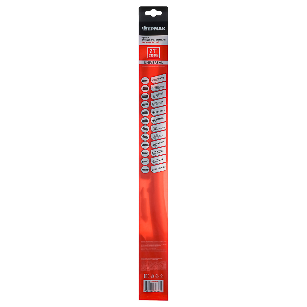 ЕРМАК Щетка стеклоочистителя бескаркасная UNIVERSAL 530мм/21", 10 адаптеров
