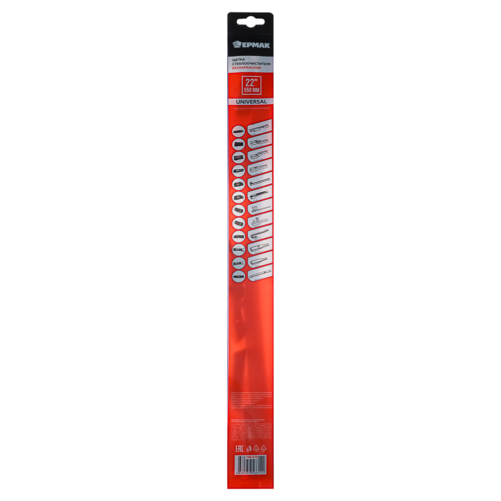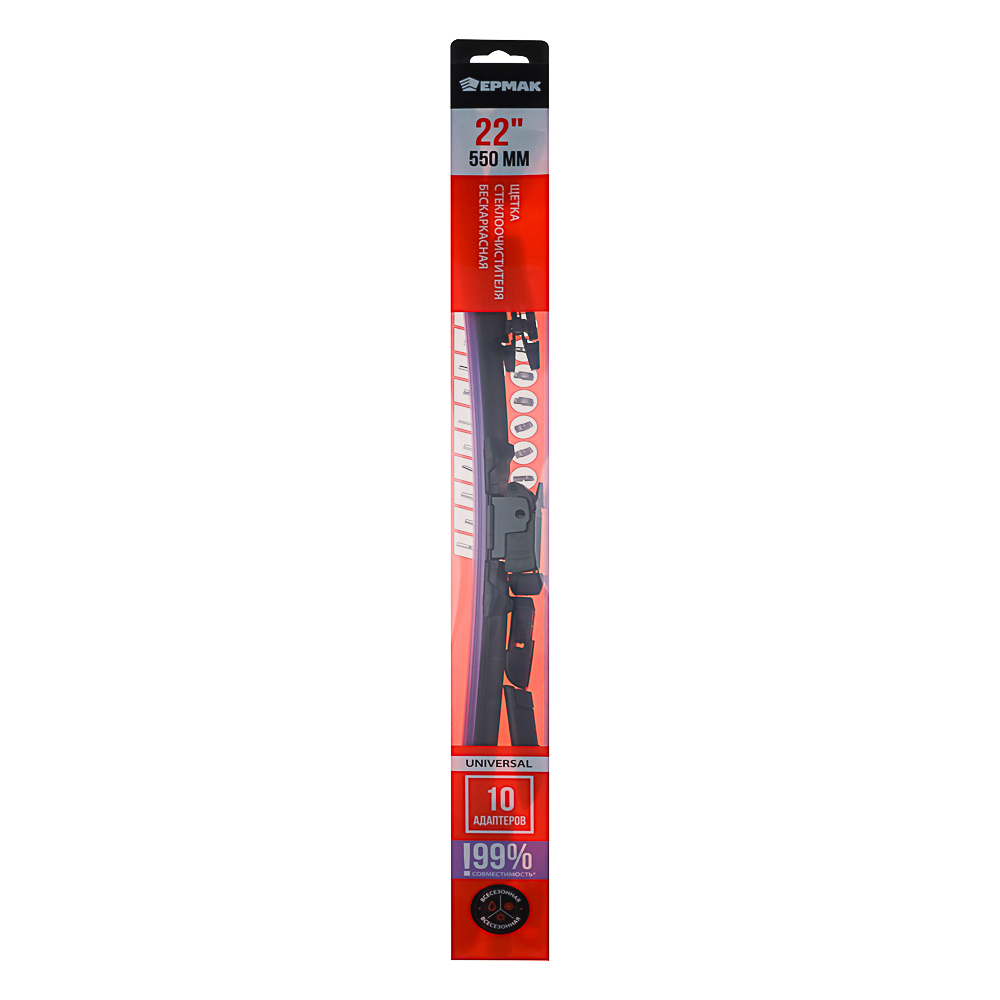 ЕРМАК Щетка стеклоочистителя бескаркасная UNIVERSAL 550мм/22'', 10 адаптеров