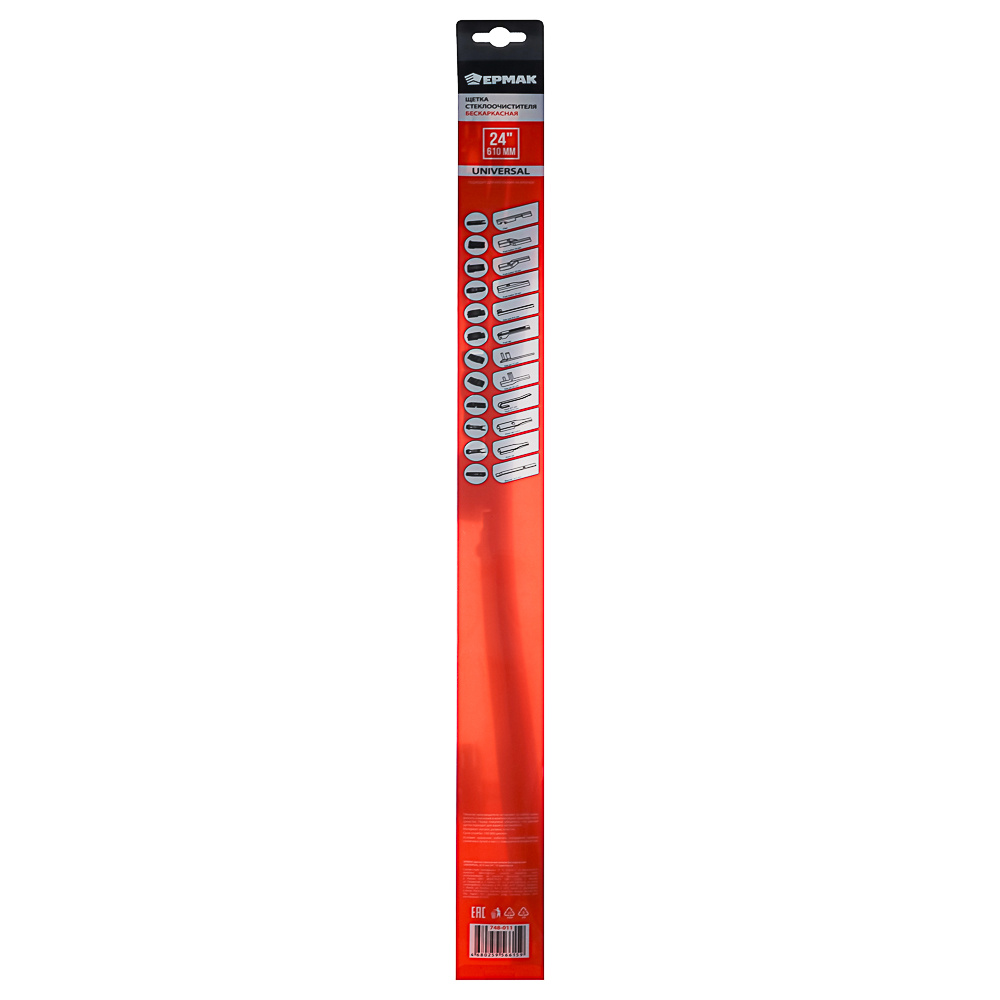 ЕРМАК Щетка стеклоочистителя бескаркасная UNIVERSAL 610мм/24'', 10 адаптеров
