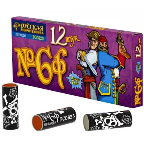 Петарды РС0625 Корсар № 6ф фитильные (в уп. 12 петард)