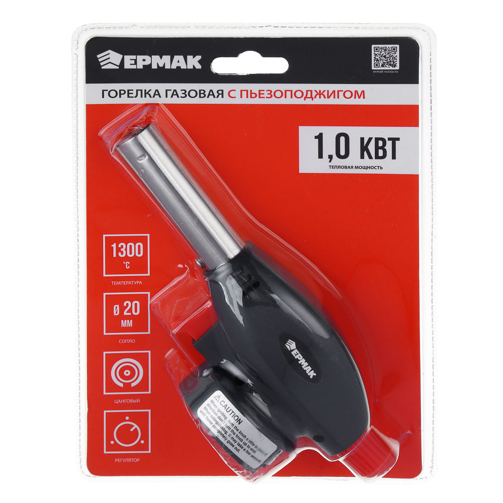 Газовая горелка с пьезоподжигом, имеет широкую область применения и подойдет для работы с термоусаживаемыми материалами, будет удобна в плавке и сварке изделий из стекла и пластмасс, поможет с разжиганием огня (костра, мангала, камина и даже кальяна), а также подойдет для удаления старой краски и разморозки замков. В газовой горелке ЕРМАК есть цанговый механизм, регулировка подачи газа, широкое сопло, наличие пьезорозжига.