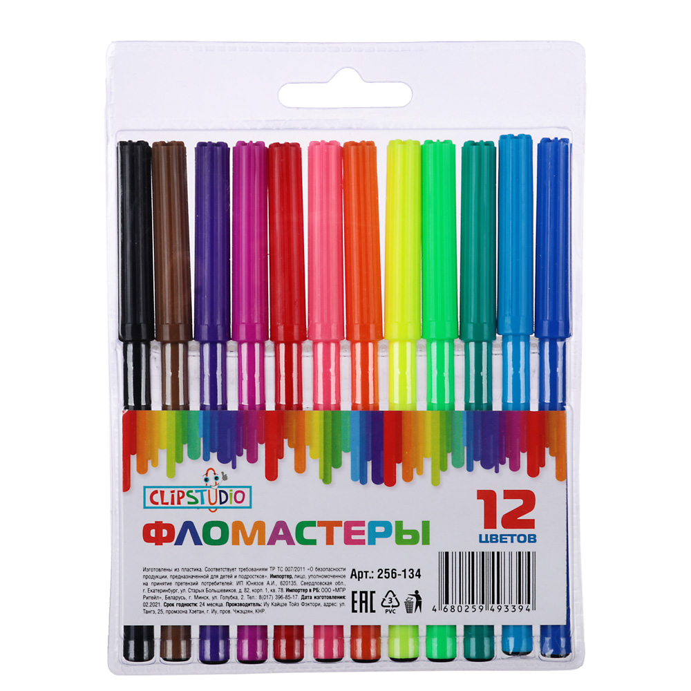 Фломастеры ClipStudio — хороший подарок юным художникам. Комплект включает 12 самых актуальных цветов. Инструменты для рисования упакованы в прозрачный ПВХ пенал. Корпуса сделаны из полипропилена. Крепкие стержни не боятся сильного давления, качественно пишут. Благодаря насыщенным пигментам получаются красивые яркие рисунки. Каждый фломастер укомплектован вентилируемым колпачком, отвечающим самым высоким нормам безопасности.