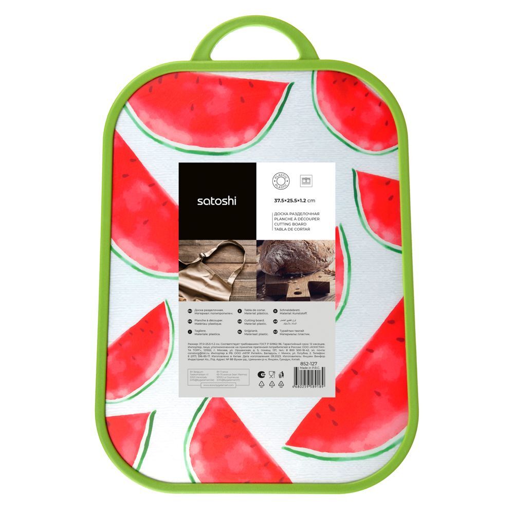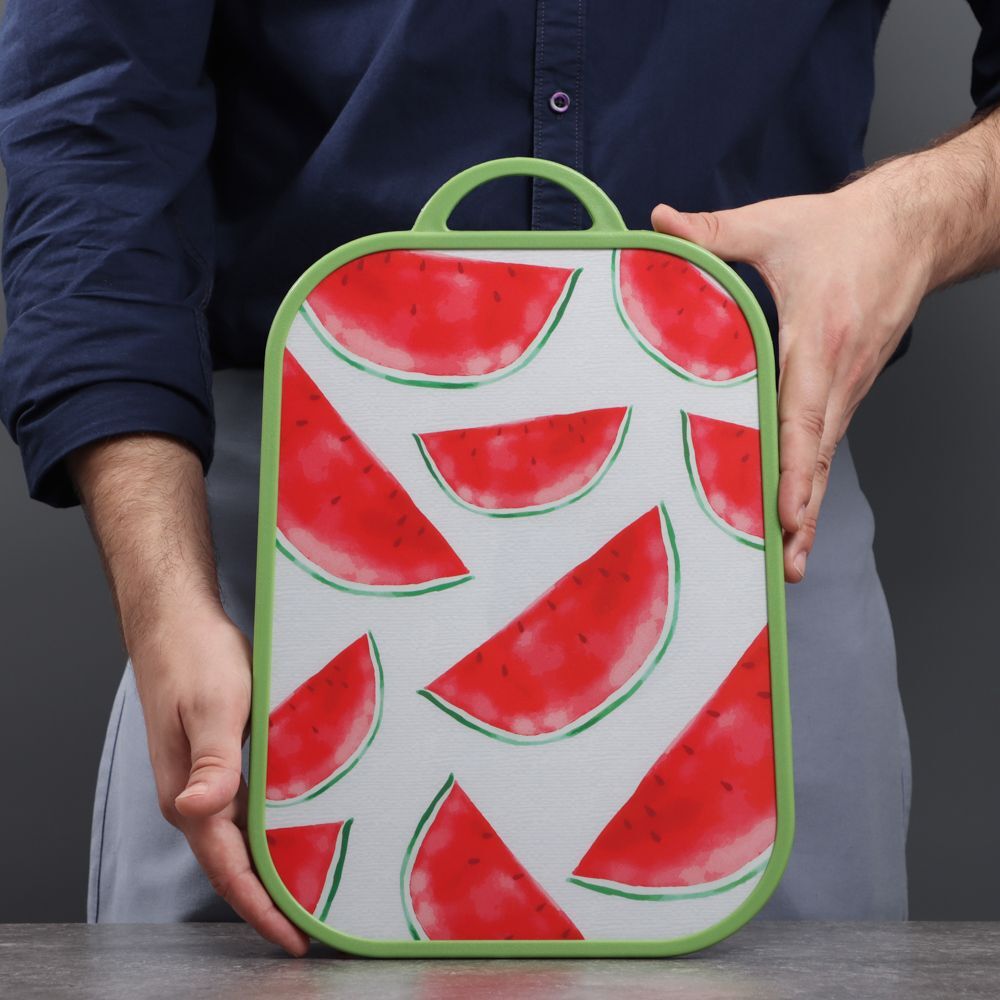 Пластиковая разделочная доска готова выполнять любые кулинарные задания. Шинковка, нарезка, очистка — на разделочной доске из пластика можно делать все и даже больше! Собрались ли вы порезать рыбу или разделать птицу, этот аксессуар всегда придет на выручку. Пластиковая поверхность не хранит ароматы продуктов, не впитывает сок фруктов и не окрашивается в их цвета.