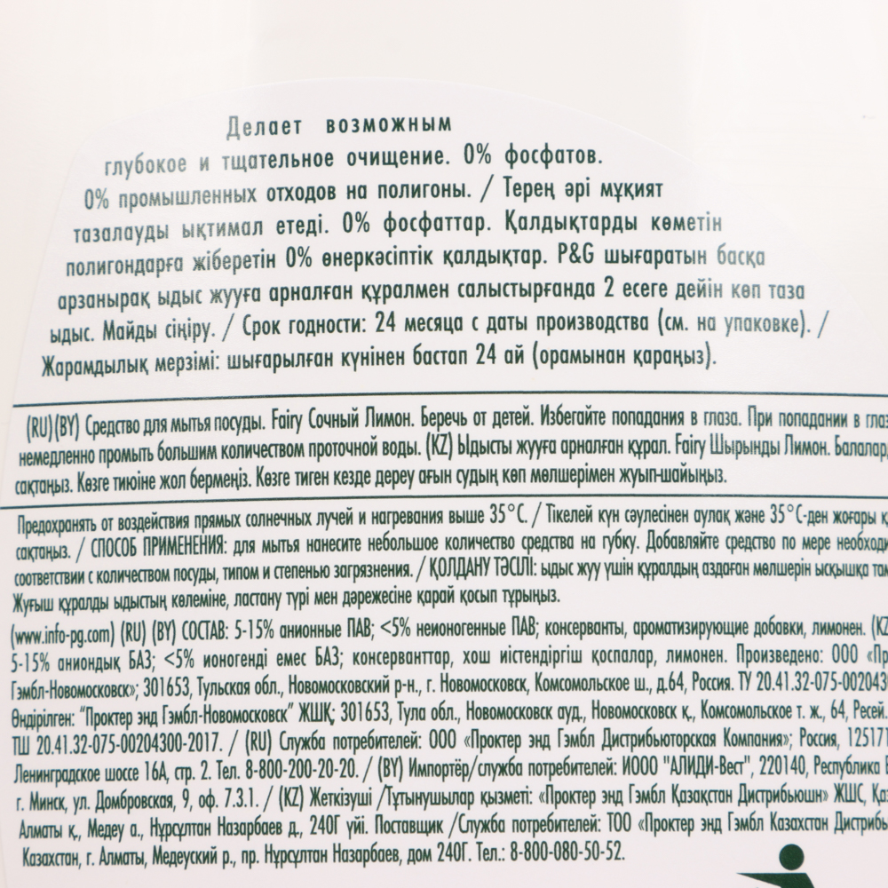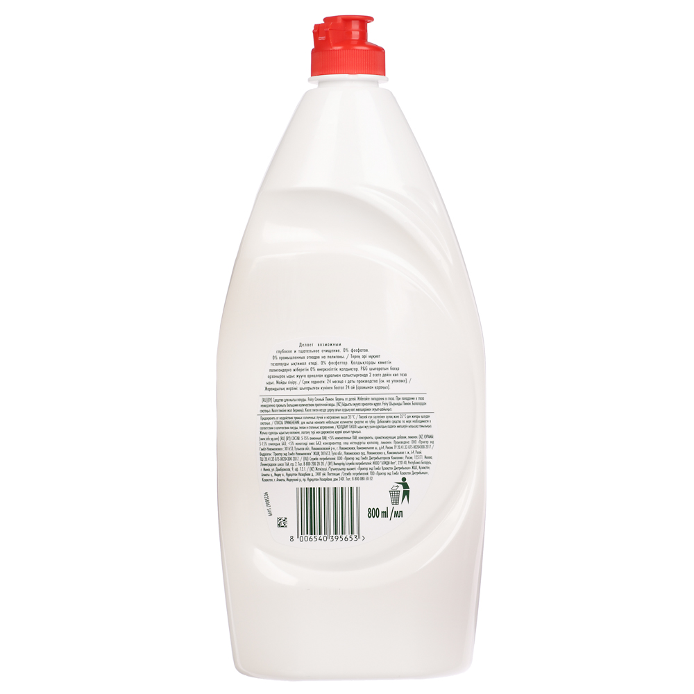 Средство для мытья посуды FAIRY «Сочный лимон» в пластиковой бутылке с дозатором объемом 800 мл со специальной формулой «поглощение жира» мгновенно расщепляет жир и смывает его с поверхности посуды. Не содержит фосфатов, поэтому абсолютно безопасно для человека и окружающей среды. Образует густую плотную обильную пену, имеет экономичный расход. Приятный освежающий аромат цитрусовых эффективно справляется с запахами от продуктов. Легко и полностью смывается, не образуя пленку на поверхности посуды.