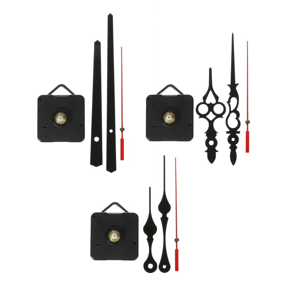 Часовой механизм LADECOR CHRONO с плавным ходом. Его используют, чтобы сделать часы на стене - прикрепить механизм и нарисовать или наклеить цифры. Можно использовать для замены часового механизма в часах подходящего размера. Работает беззвучно - подходит для спален и офисов. Размер 13,1-14,3 см. Три вида со стрелками разного дизайна: выберите подходящий.