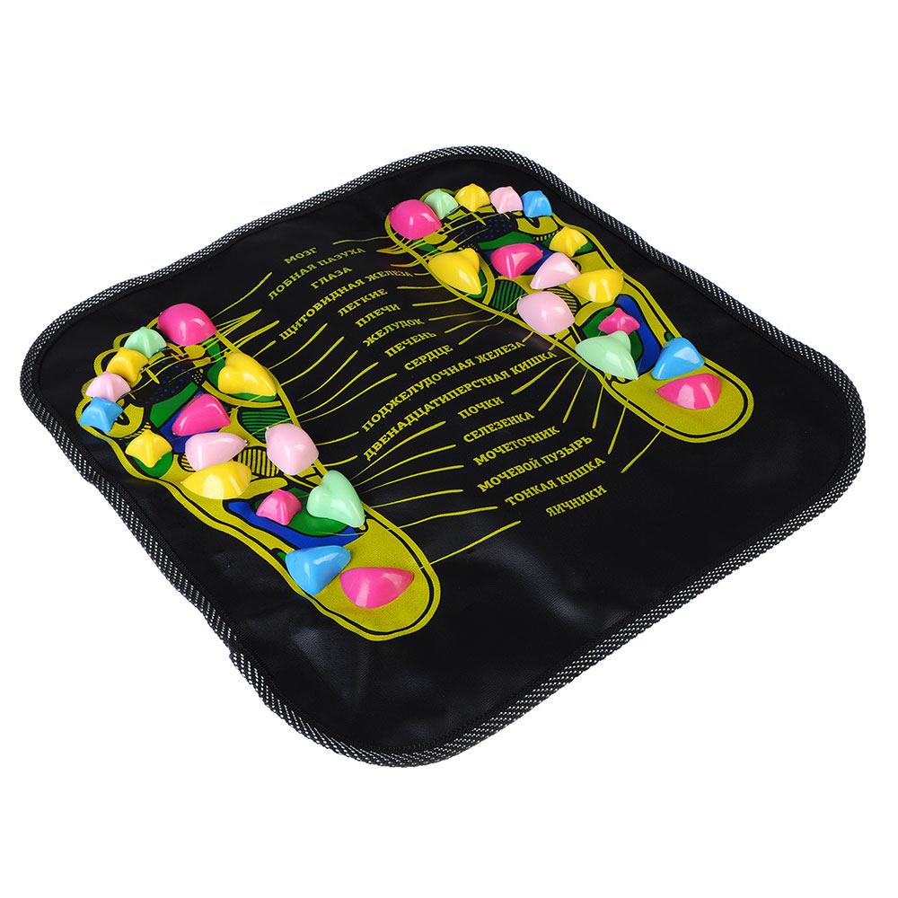 Коврик массажный для ног с указанием акупунктурных точек. Предназначен для точечного массажа рефлекторных зон, оздоровительного массажа стоп, укрепления связочно-мышечного аппарата голеностопного сустава.