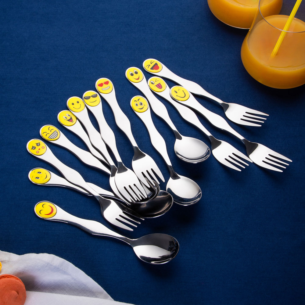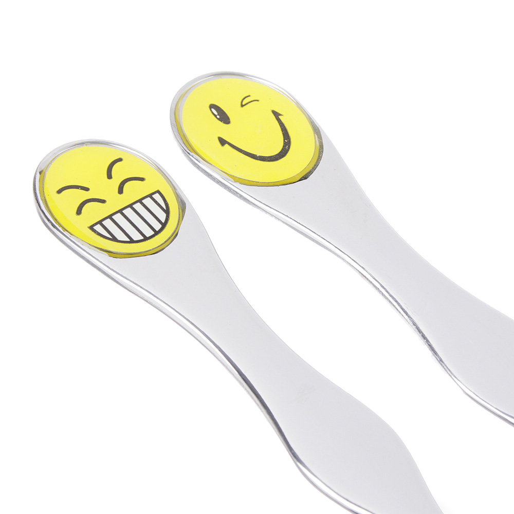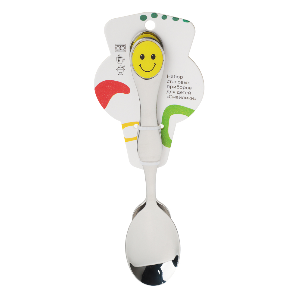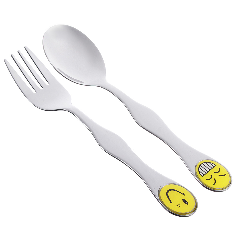 Набор столовых приборов "Смайлики" включает две незаменимые столовые принадлежности — ложку и вилку. Набор изготовлен из высококачественной нержавеющей стали: прочен и устойчив к деформации, обладает высокими антикоррозийными свойствами, устойчив к воздействию кислот и щелочей, не изменяет вкусовые качества, запах и цвет пищи, так как не вступает реакцию с ее компонентами, очень прост в уходе.Особенностью данного набора является его яркий и забавный дизайн. Смайлики на ручках приборов обязательно поднимут настроение вашему малышу и сделают прием пищи веселым и интересным. Такой набор не только удобен в использовании, но и станет отличным украшением для детской тарелки.