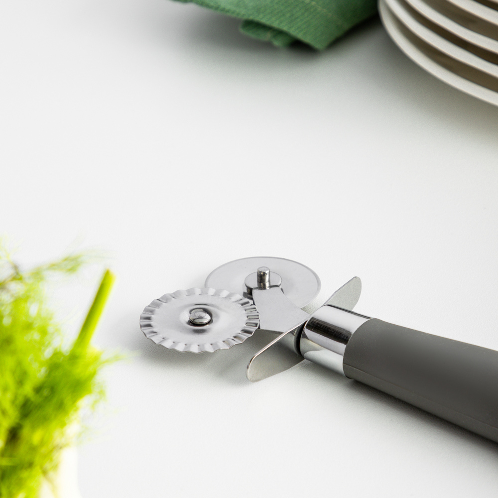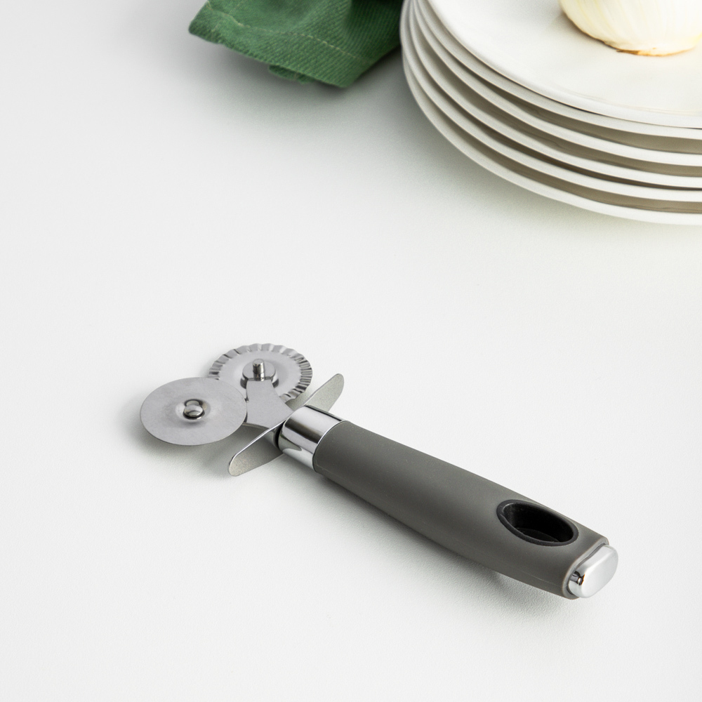 Ролик-нож из нержавеющей стали для теста SATOSHI Витре позволит сэкономить время на кухне, а домашняя выпечка будет выглядеть, как произведение профессионального кулинара. Достаточно просто раскатать тесто и прокатить по нему валик, чтобы получить красивую ажурную полоску и смастерить из нее аппетитный пирог или украшения для него. Походит для нарезки теста для приготовления вареников, пельменей, пасты. Незаменимый помощник для каждого кулинара!