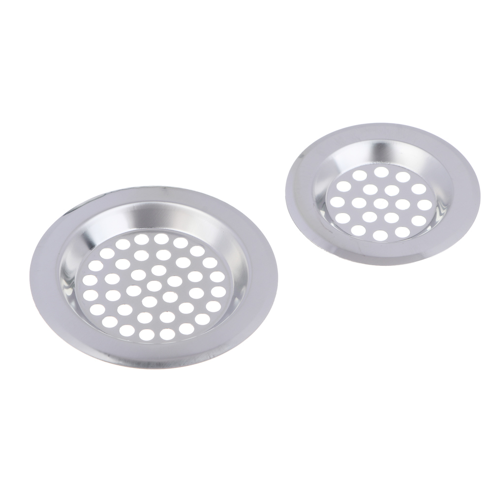 Металлические решётки для раковины не позволят засориться стоку на кухне или в ванной. Набор из двух решёток подойдет к сливным отверстиям разного диаметра.