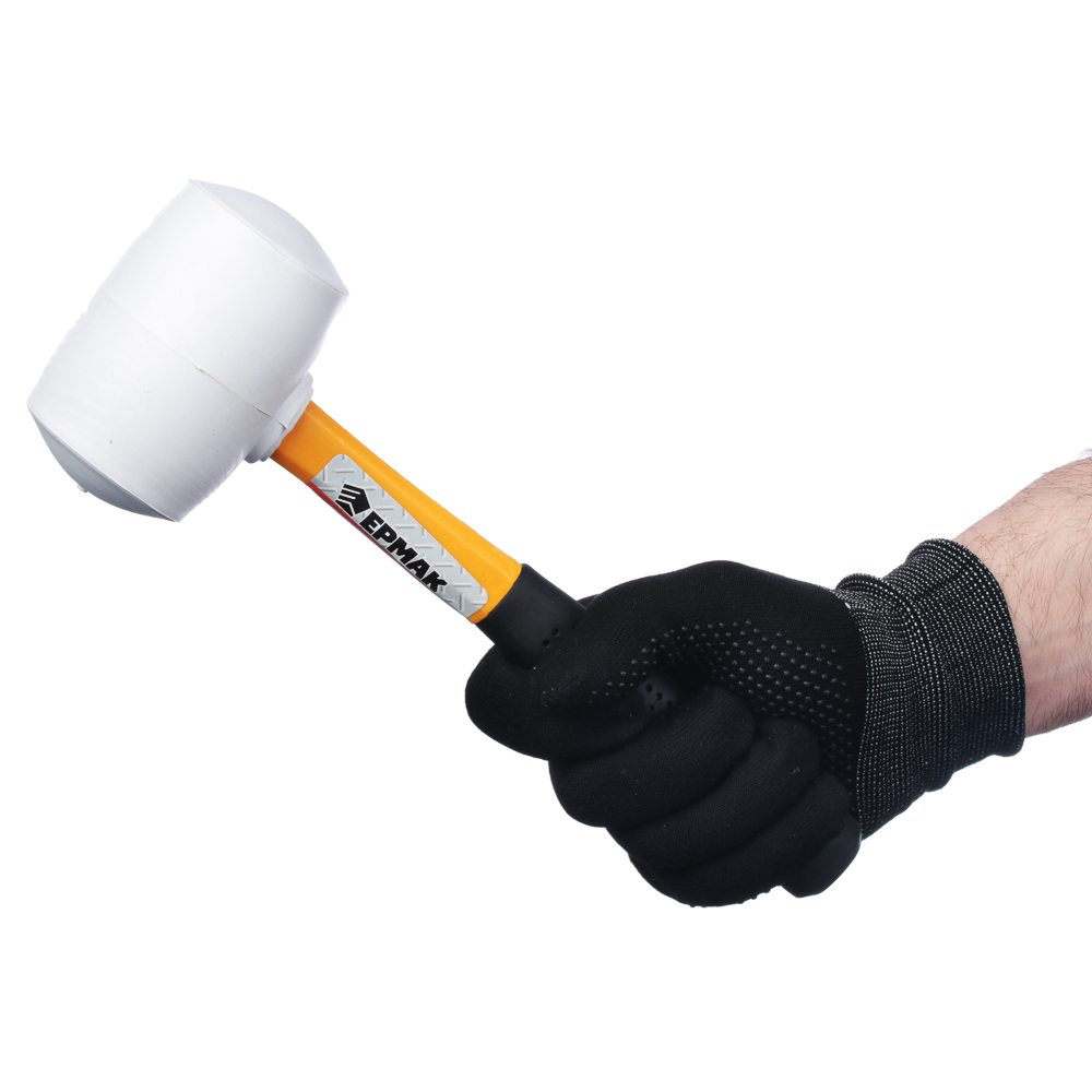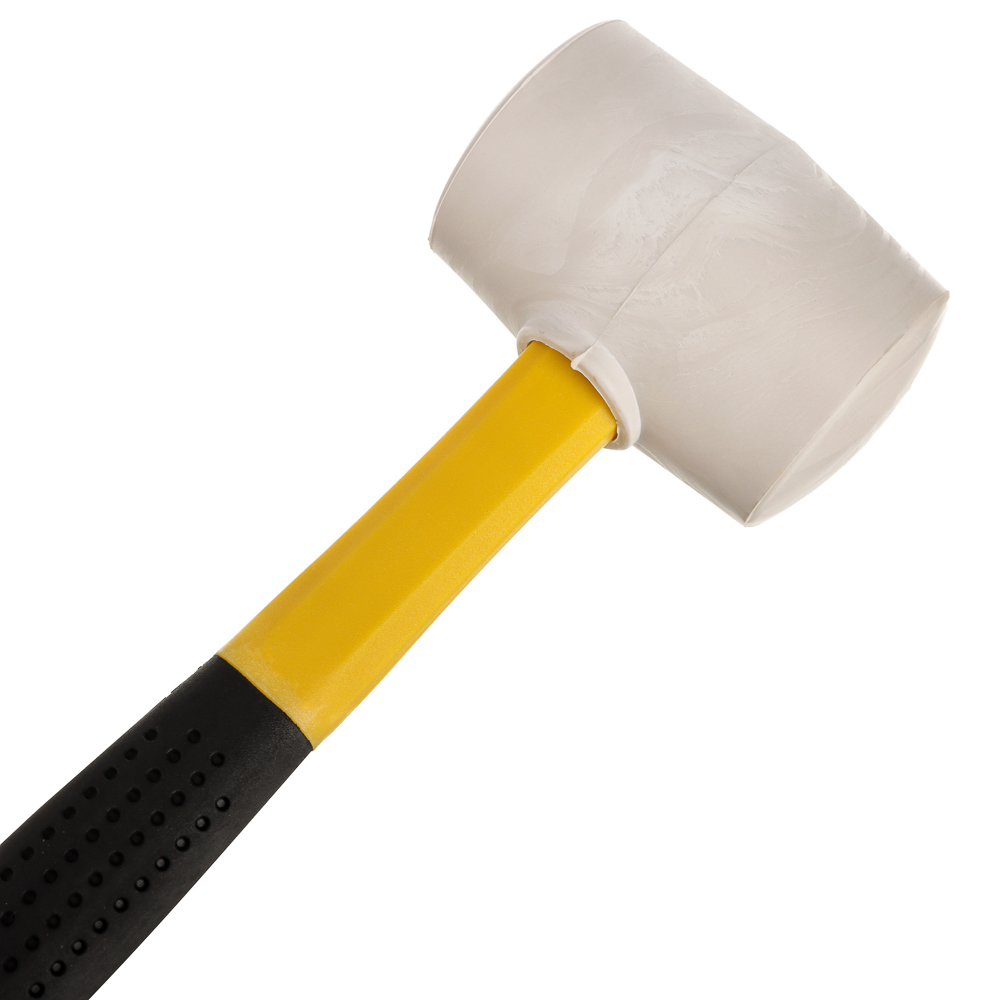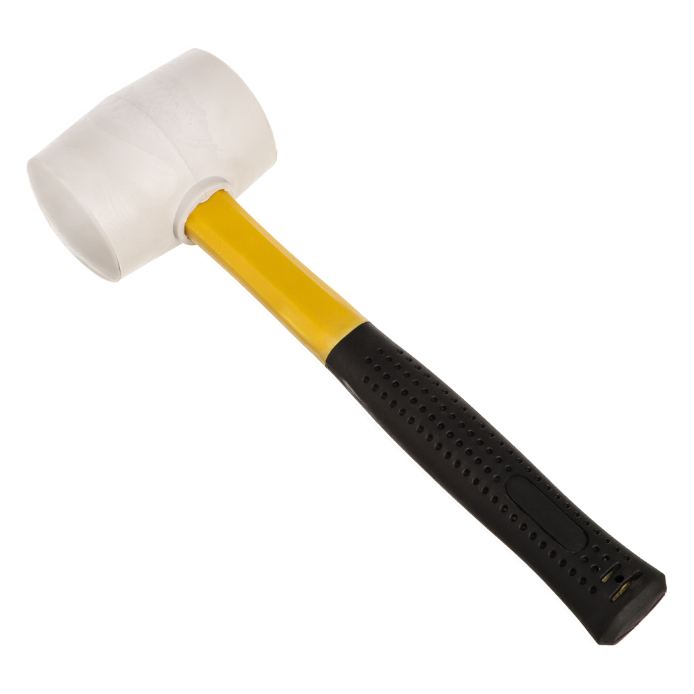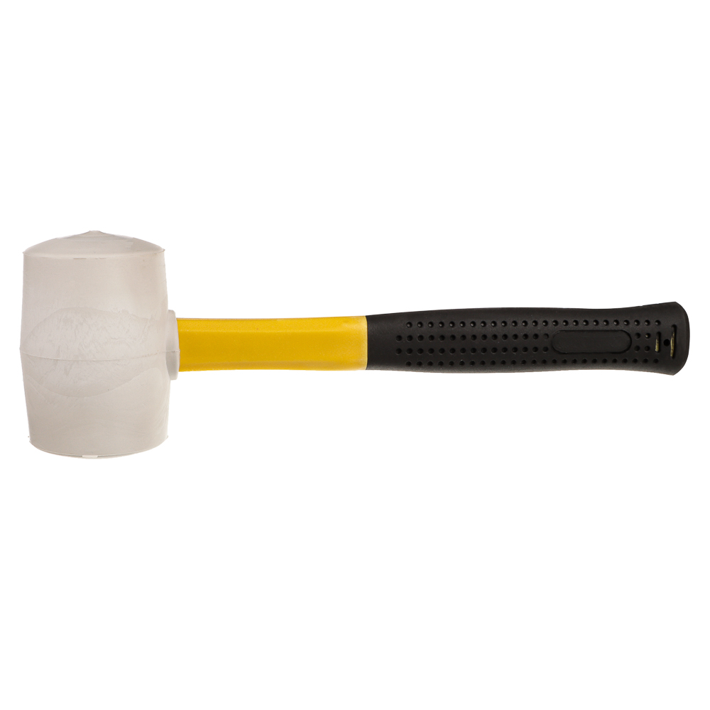 Киянка из белой резины с фиберглассовой обрезиненной рукояткой применяется для правки листового металла в тех случаях, когда высокая твердость стальных молотков нежелательна. Белая резина не окрашивает места ударов обрабатываемой поверхности. Обрезиненная рукоятка амортизирует удар и не скользит в руке, обеспечивая безопасность и комфорт работы.