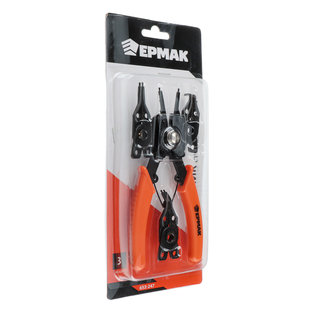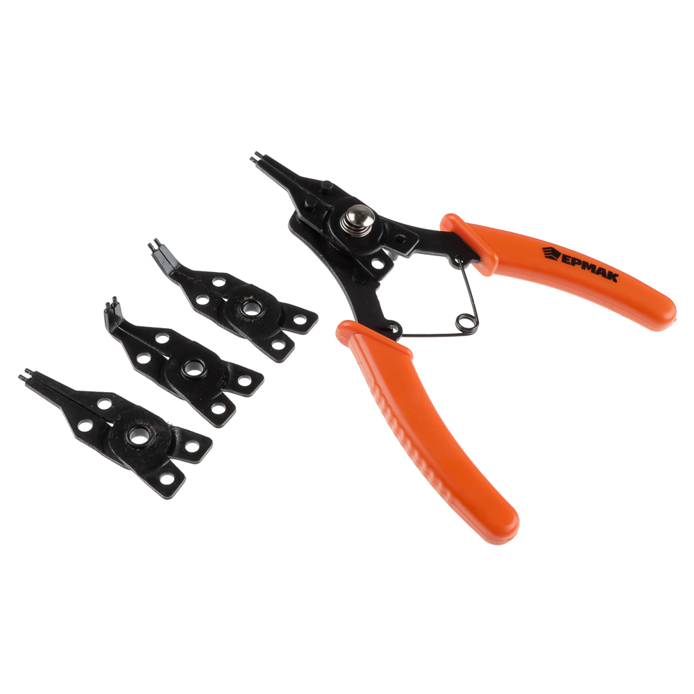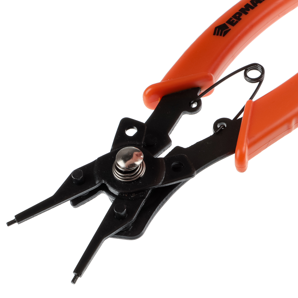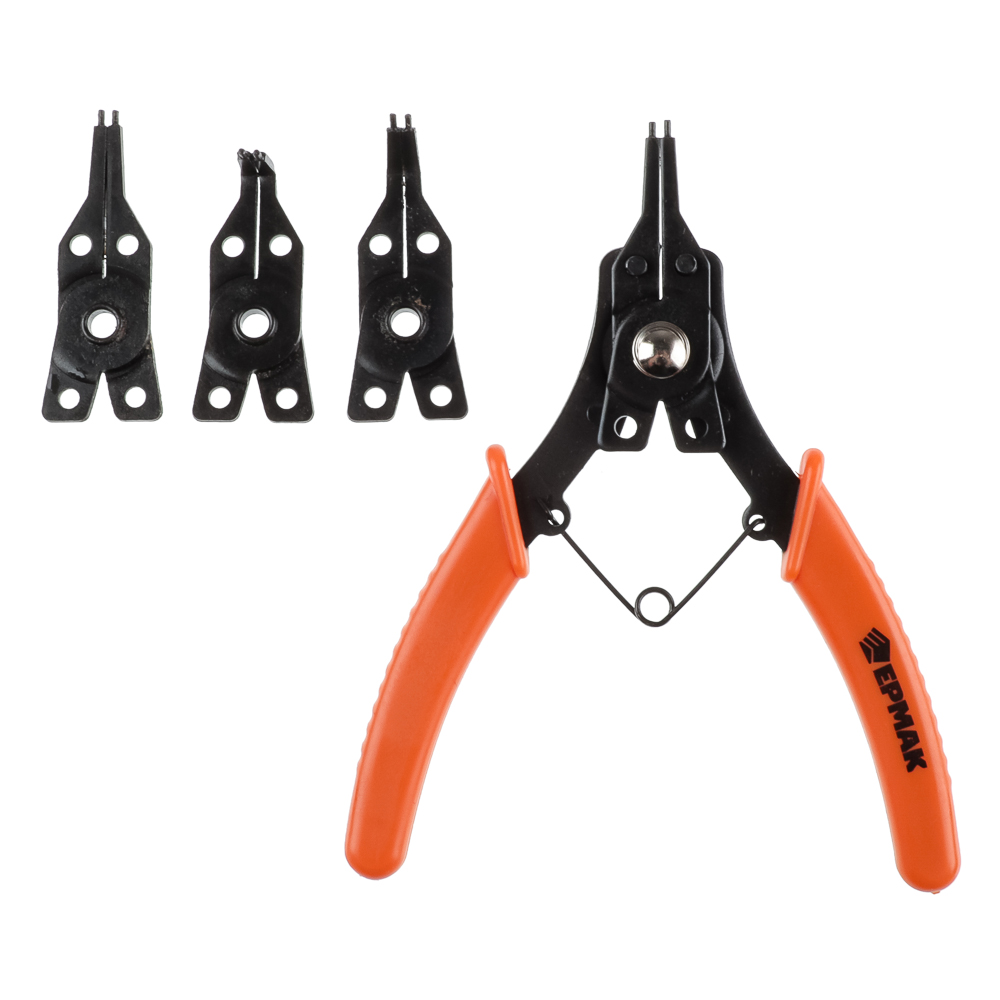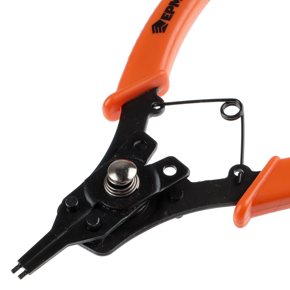 Разжим стопорных колец используется для монтажа внешних и внутренних стопорных колец. В комплект входит 4 насадки, которые позволяют проводить работу под требуемым углом. Рабочая часть изготовлена из усиленной инструментальной стали, что гарантирует долги