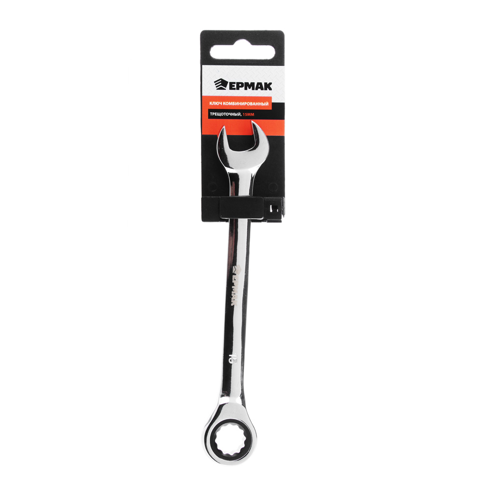 Ключ комбинированный трещоточный ЕРМАК 15 мм изготовлен из стали высокого качества с защитным покрытием от коррозии. Трещоточный механизм позволяет с комфортом пользоваться инструментом в ограниченном пространстве, обеспечивая высокий крутящий момент. Необходимый инструмент в коллекции домашнего мастера.