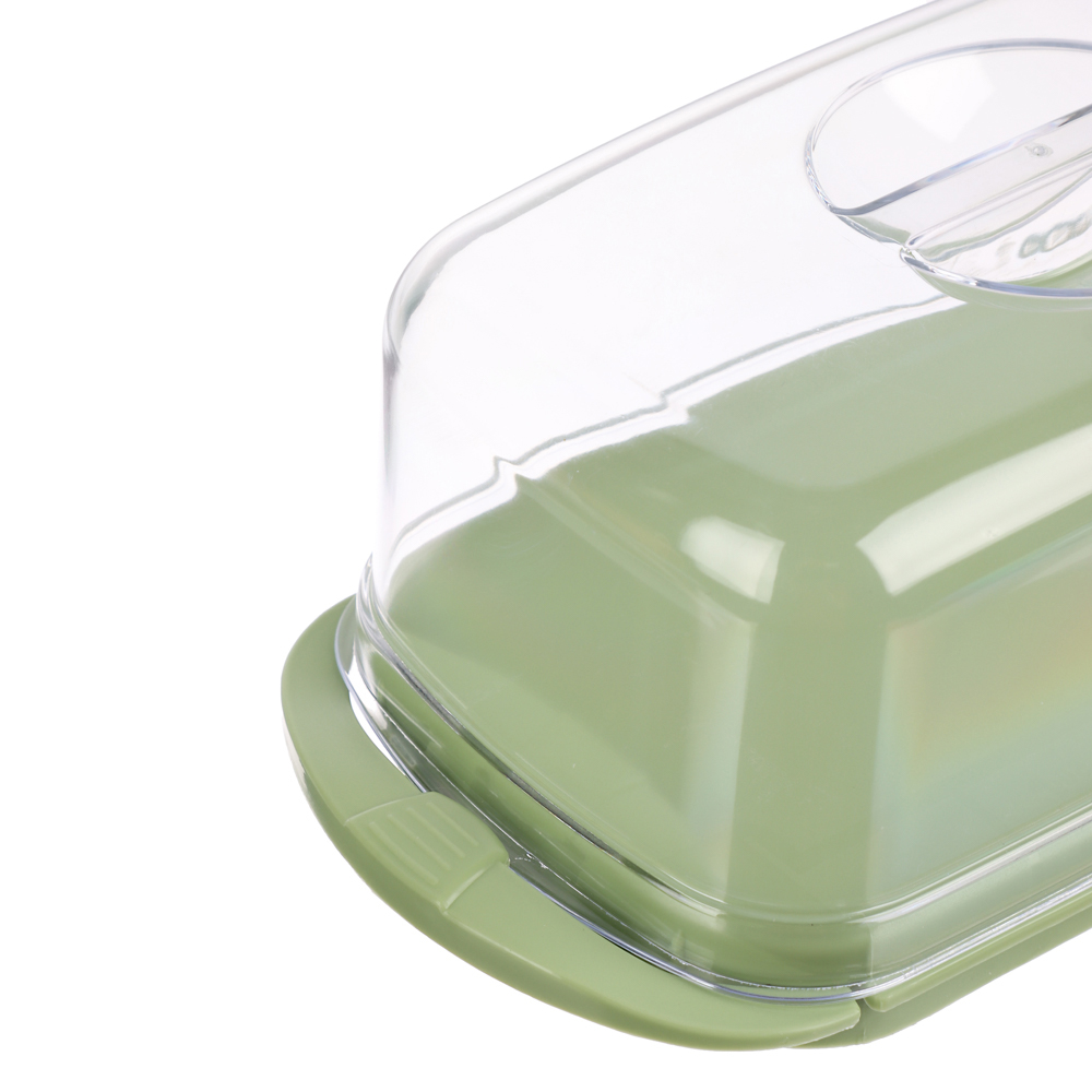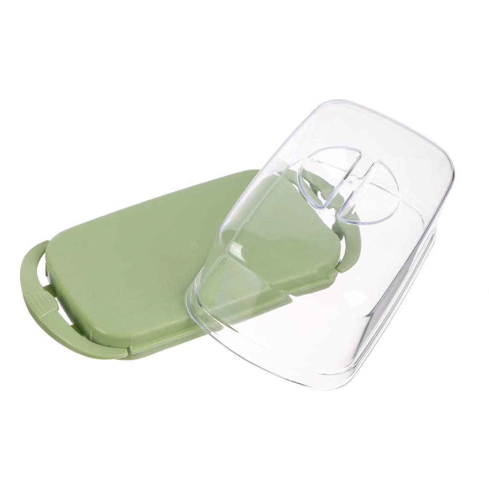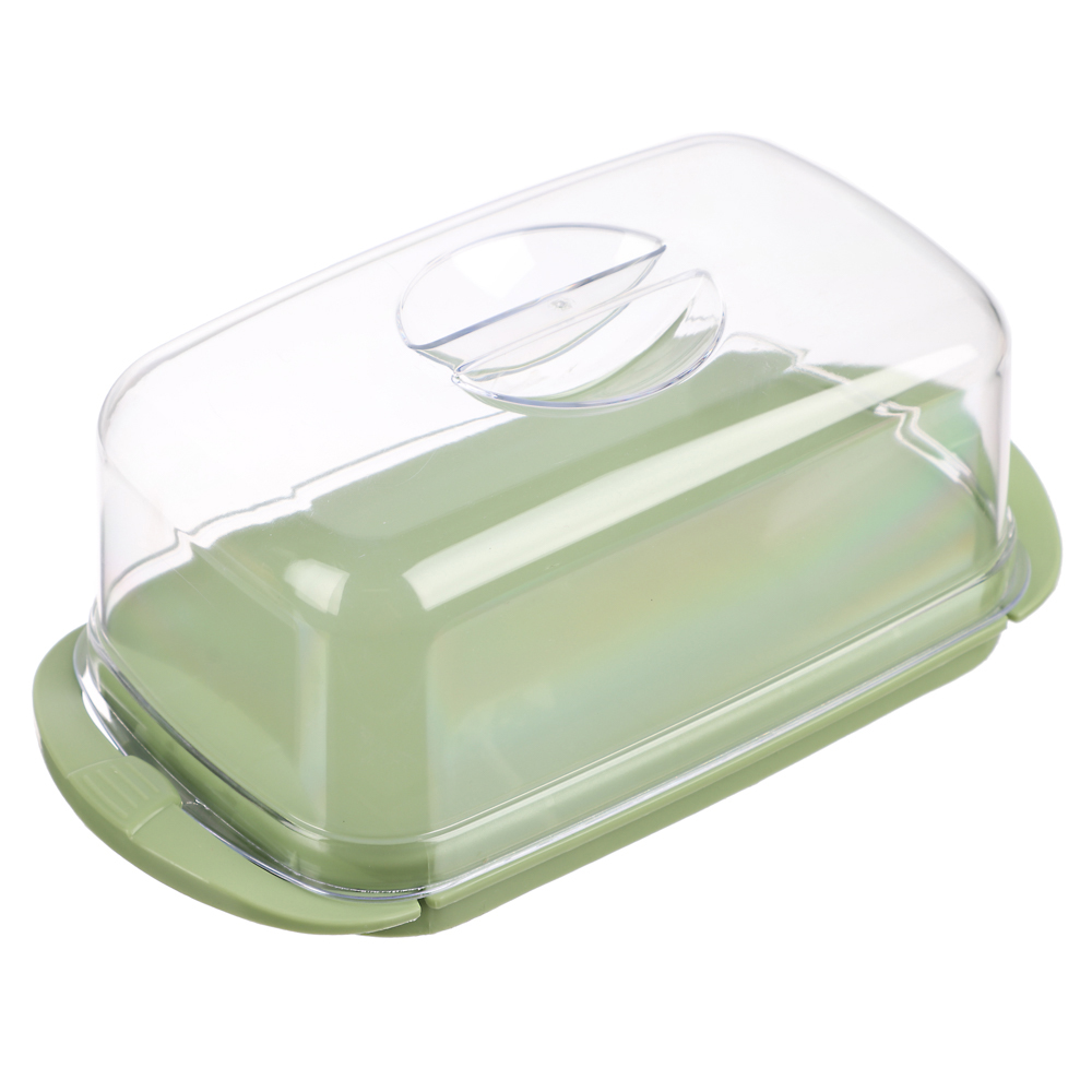 Масленка размером 18х9,5х6,5 см из пищевого пластика с прозрачной крышкой предназначена для хранения сливочного масла. Блюдо удобно для дозирования масла при помощи ножа, а надежная крышка не соприкасается с продуктом и исключает контакт масла с воздухом и посторонними запахами, поэтому продукт долго хранится и не окисляется. Универсальный дизайн будет гармонично смотреться на любой кухне.