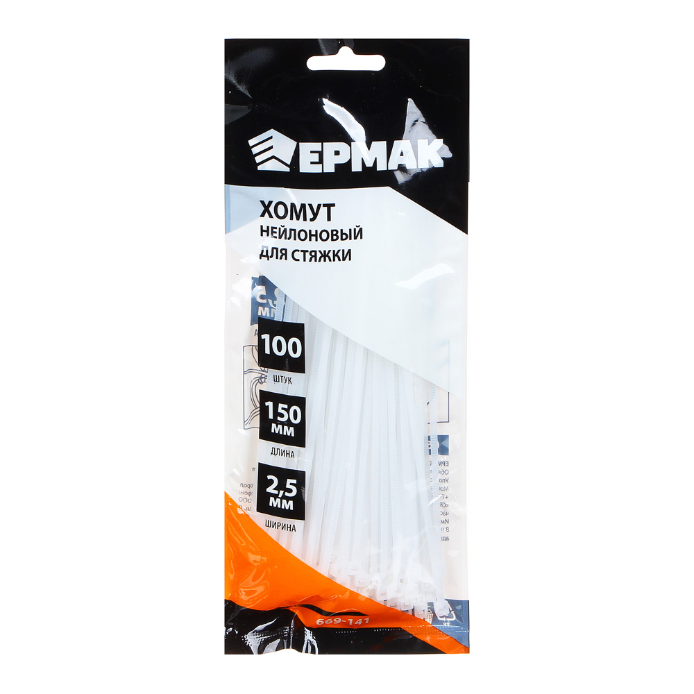 Нейлоновый хомут для стяжки ЕРМАК 2,5х150 мм белого цвета используется для фиксации, стяжки и крепления кабелей, проводов, шлангов в пучок во время монтажа электропроводки, а также для бытовых целей. Хомут прочный, долговечный, устойчив к растяжению, растрескиванию и деформации, не плесневеет. Имеет надежный замок с блокировкой. 100 штук в упаковке.