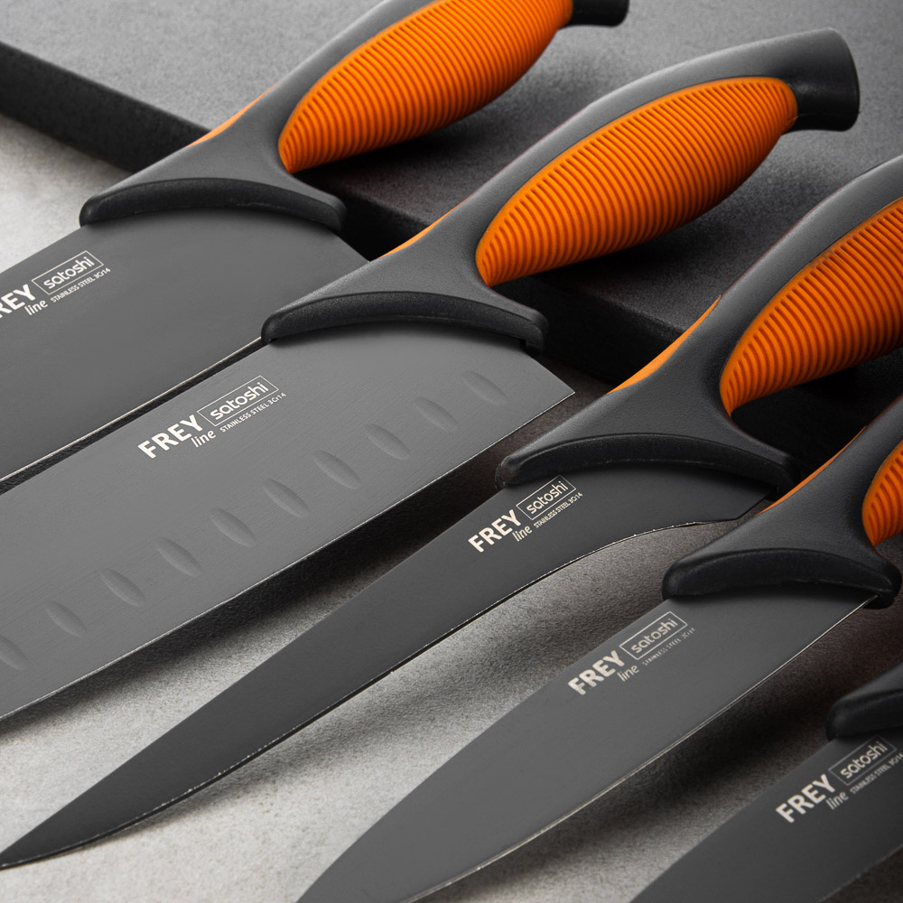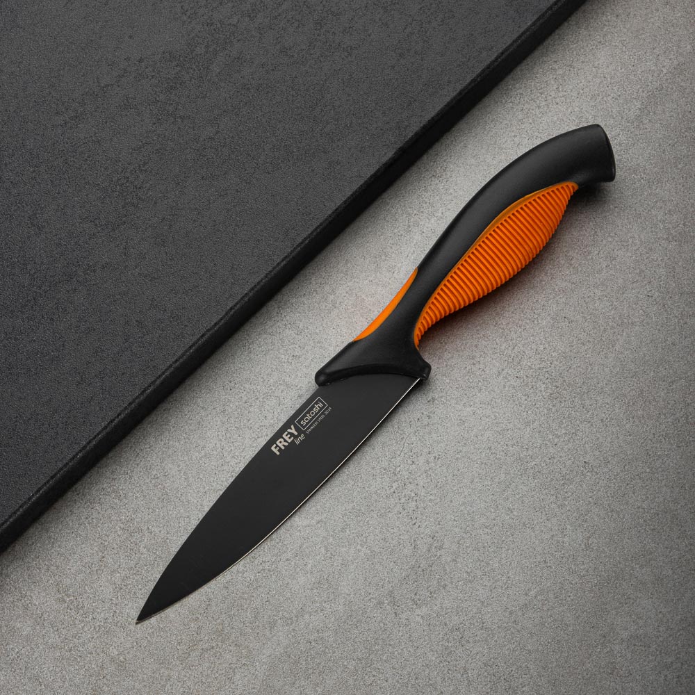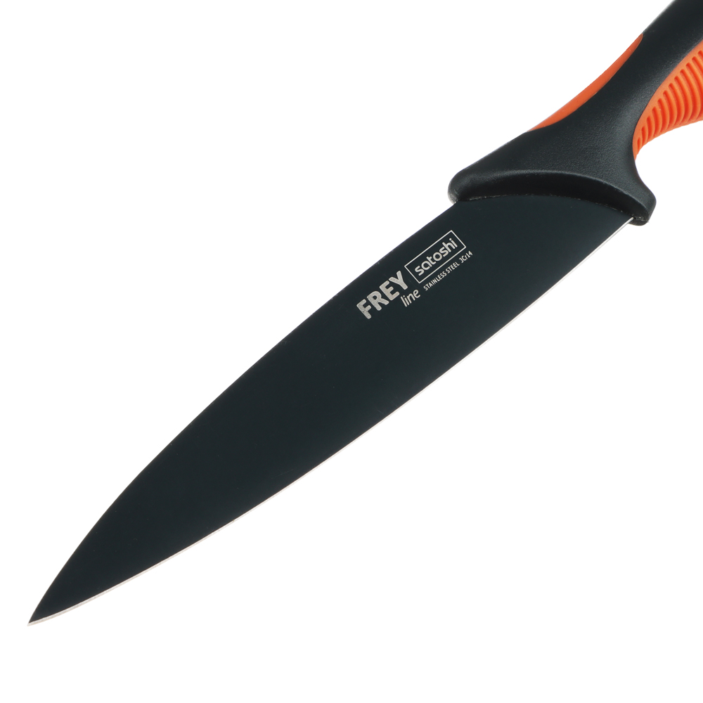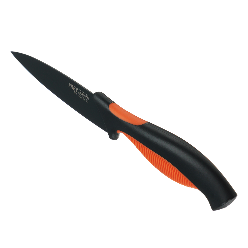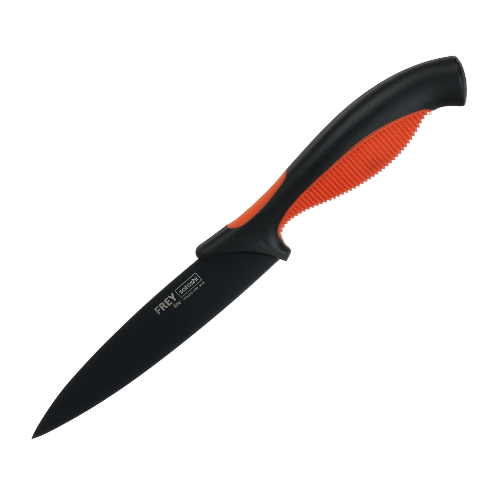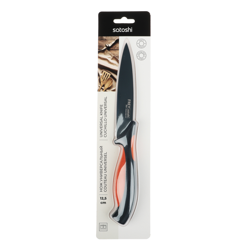 Овощной кухонный нож SATOSHI «Фрей» с длиной клинка 12,5 см из нержавеющей стали с экологичным антиналипающим покрытием – универсальное решение для домашней кухни. Компактный нож удобен для очистки овощей и фруктов, а также для нарезки продуктов. Тонкое лезвие беспрепятственно проникает в продукт, что позволяет производить нарезку тонкими ломтиками. Рукоятка с антискользящей ребристой накладкой и покрытием «soft-touch» не выскальзывает из рук и не вызывает усталости в области кисти даже при длительной работе ножом. Сталь устойчива к коррозии и не влияет на вкус продуктов.