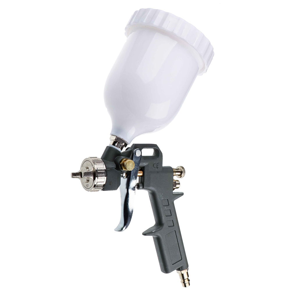 Краскораспылитель с верхним бачком предназначен для нанесения защитных, декоративных, изоляционных покрытий на такие поверхности как металл, пластик или дерево.