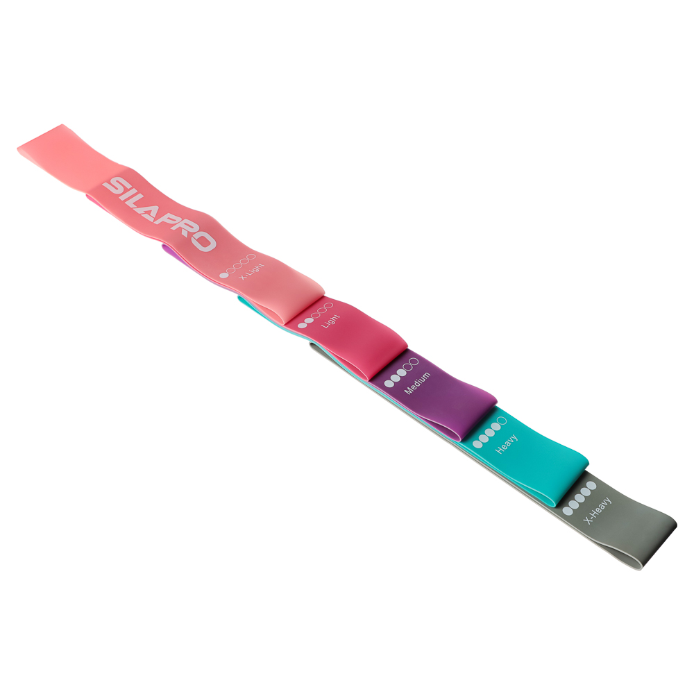 6 причин купить фитнес резинки Silapro:• каждый цвет обозначает уровень сопротивления: легкий, средний, тяжелый;• набор подходит для самых разнообразных упражнений: приседаний и выпадов;• тренируют ноги, бедра, пресс и ягодицы, помогают достичь идеальной фигуры;• легкие и компактные — резинки для фитнеса удобно брать в путешествия и спортзал;• можно прорабатывать любые группы мышц и увеличить эффективность обычных упражнений;• минимальный риск получить травму — с набором спортивных резинок справится даже новичок.