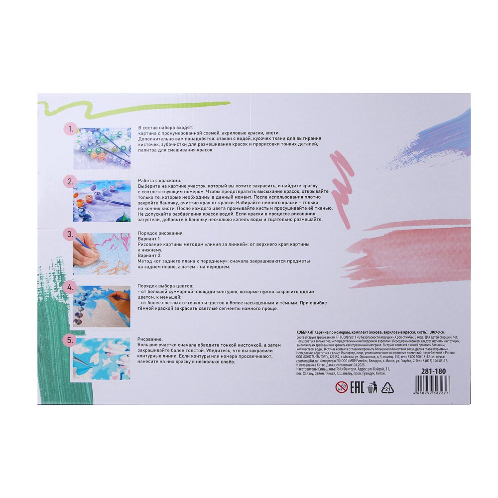 Картина по номерам ХОББИХИТ – это замечательный набор для творчества, который поможет вам создать настоящие шедевры своими руками. В комплект входит основа для рисования размером 30х40 см, акриловые краски и кисть. Набор представлен в 10 различных дизайнах, что позволяет выбрать сюжет по вкусу. Элементы изображения и краски пронумерованы. Ребенку нужно правильно сопоставить цифры и раскрасить рисунок. Набор идеально подходит для тех, кто хочет попробовать себя в живописи, но не уверен в своих художественных способностях. Картина по номерам от ХОББИХИТ станет отличным подарком и увлекательным хобби, которое приносит радость и удовлетворение от процесса создания прекрасного произведения искусства.