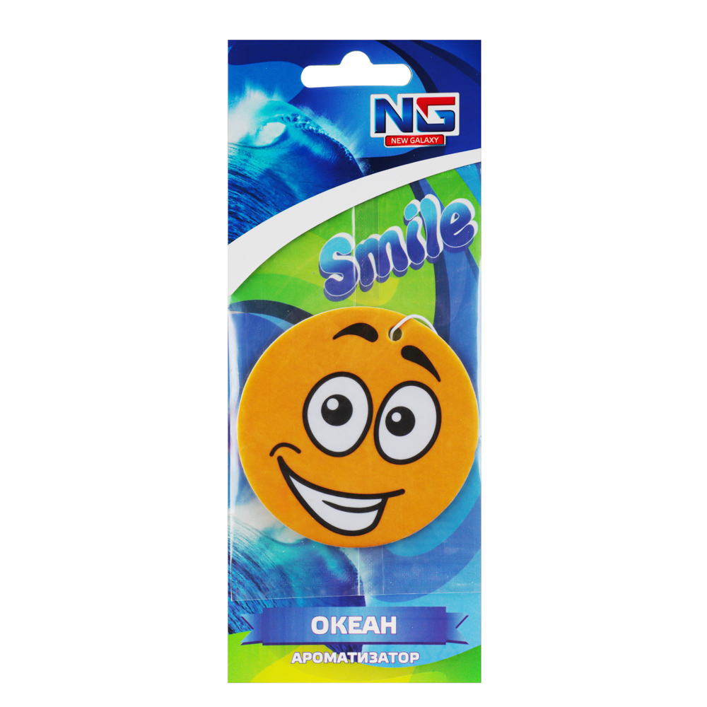 Автомобильный ароматизатор "Смайл" с ароматом океан выполнен из плотной бумаги и пропитан парфюмированым средством. В обиходе этот вид ароматизаторов еще называют "елочка". Такой освежитель воздуха может располагаться в любом месте машины и обеспечивать в салоне приятный аромат и нейтрализацию посторонних запахов на длительное время.