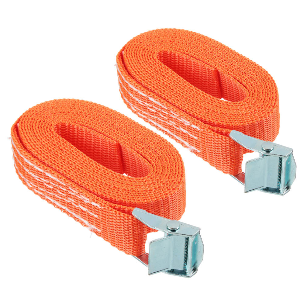 Набор крепежных ремней включает 2 ремня длиной 2,5 метра каждый. Ремни помогут зафиксировать перевозимый груз, сохраняя его целостность. Оснащены прочными металлическими замками для надежной фиксации. Рассчитаны на обхват груза до 700 кг, имеют разрывную нагрузку 350 кг. Обладают устойчивостью к истиранию и к внешним воздействиям, включая УФ-излучение.