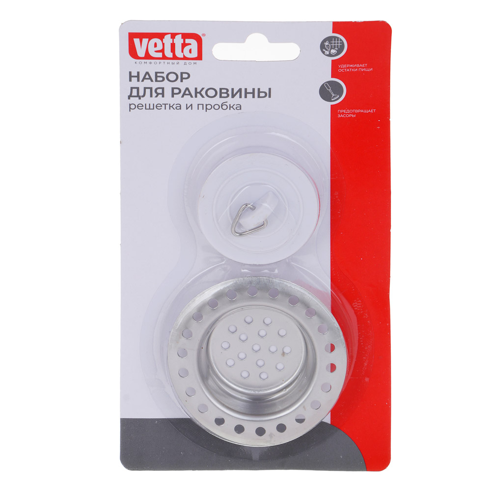 Набор из решётки и пробки для раковины. Металлическая решётка для раковины не позволят засориться стоку на кухне или в ванной.