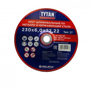 Купите товар «889198 Круг (диск) шлифовальный TYTAN Professional по металлу и нержавеющей стали 230х6,0х22,22, арт.11463» по оптовой цене с доставкой или самовывозом. В Екатеринбурге и других городах.
