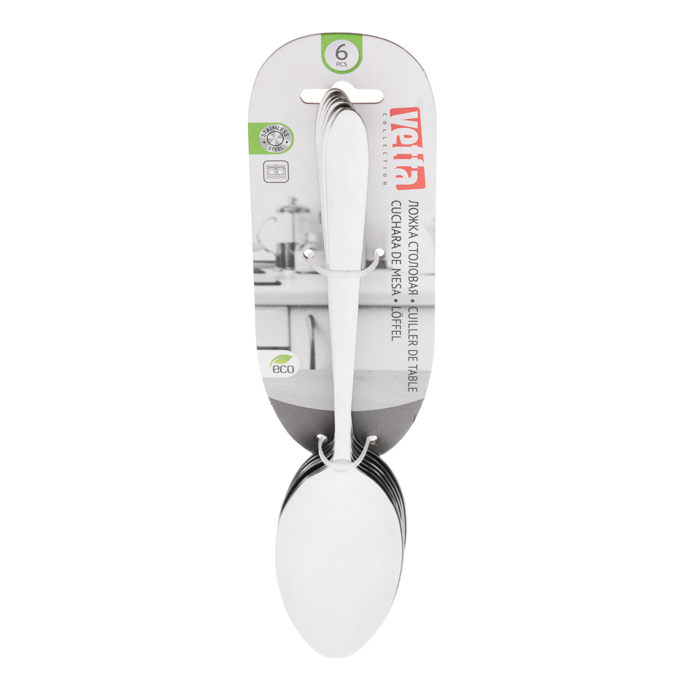 Отполированная до блеска столовая ложка VETTA Тренто станет достойным украшением домашнего обеда и подчеркнет безупречный стиль любого заведения. Отличительная черта столового прибора — изысканная простота. Столовая ложка из нержавеющей стали VETTA Тренто не боится температурных перепадов, сильного нагрева, взаимодействия с кислыми блюдами. Изделие не темнеет, не деформируется и радует хозяйку безупречным видом долгие десятилетия.