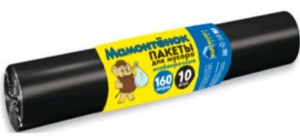 Мешки для мусора 160л/10шт,24мкм,ПВД,особопрочные,черные,рулон,МРМ4586 Мамонтенок Чистолюб