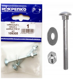Купите товар «426975 Болт мебельный с гайкой и шайбой 6*60 (2 шт BL) (цена за уп) НАКРЕПКО 109305» по оптовой цене с доставкой или самовывозом. В Екатеринбурге и других городах.