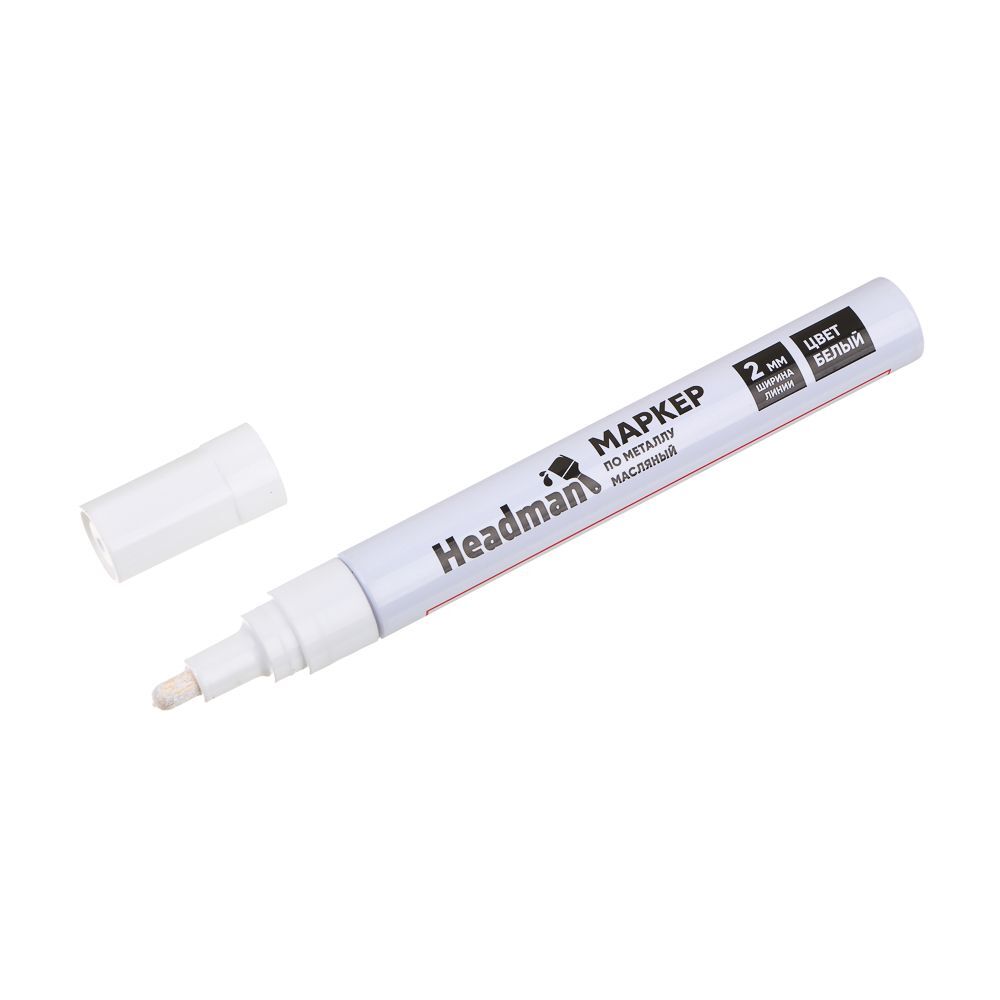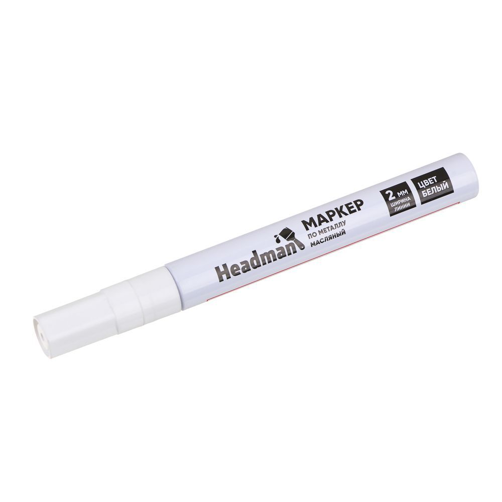 Маркер по металлу HEADMAN масляный белый с толщиной линии 2 мм используется в ремонте, строительстве, столярном деле, во время сварки, в автомастерских и сборочных цехах. Подходит для некоторых типов реставрационных работ: закрашивания царапин на обуви, автомобильном кузове, бытовой технике, мебели. Может использоваться в творчестве. Имеет превосходную укрывистость, быстро высыхает, не стирается и не размазывается. Подходит как для металла, так и для дерева, картона, керамики.