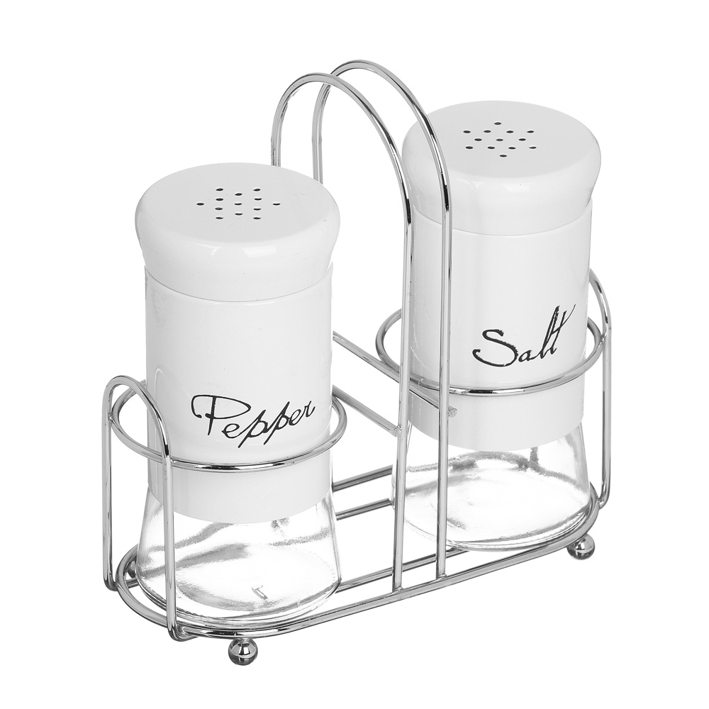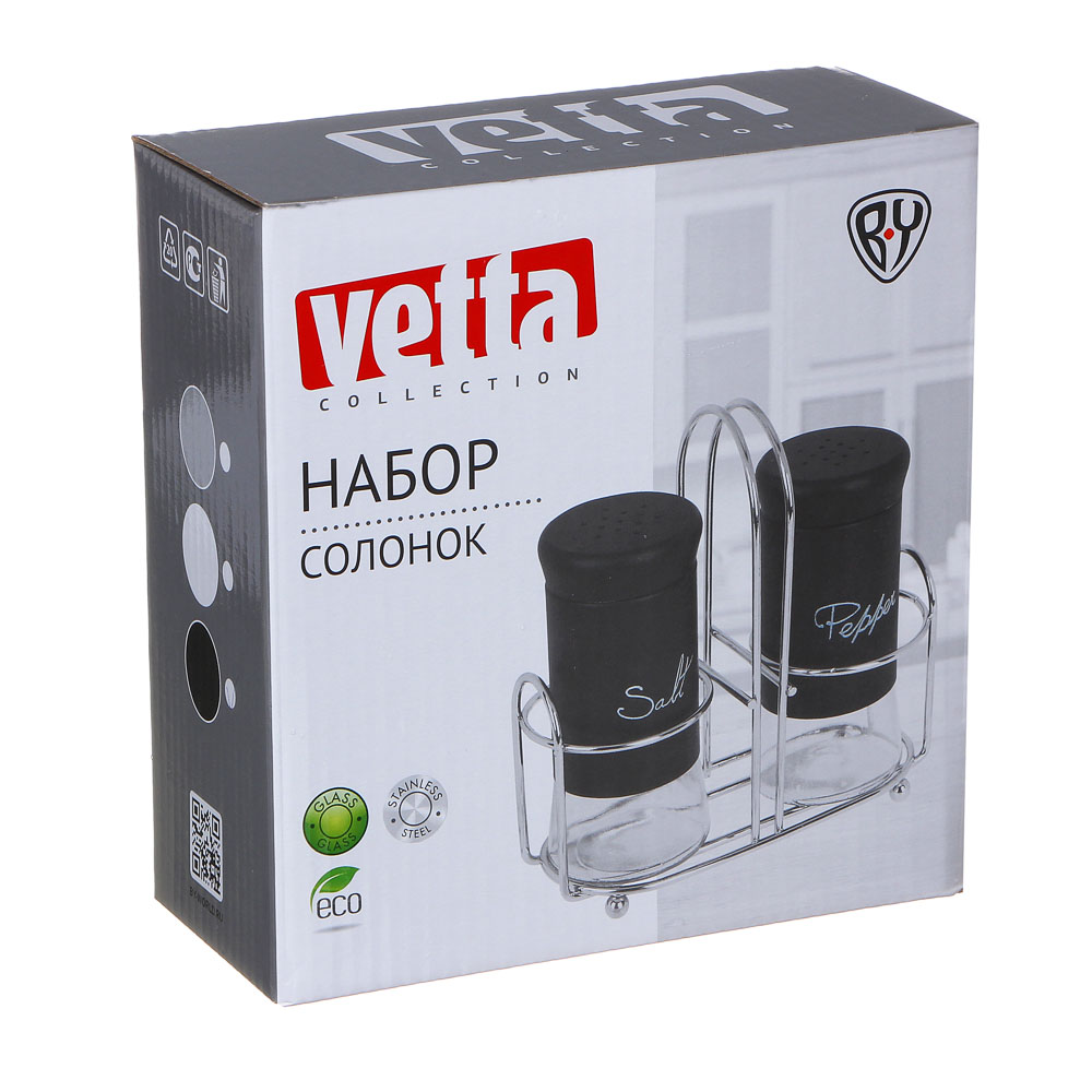Соль и перец сопровождают каждую трапезу, поэтому уместно иметь на столе компактный набор для специй. Набор солонок с подставкой VETTA сочетает в себе функциональность и эстетичный дизайн. Солонка и перечница изготовлены из высококачественной нержавеющей стали и стекла, а крышки с отверстиями позволяют оптимально дозировать соль и перец по вкусу. Набор компактно расположится на обеденном столе и станет достойным дополнением к кухонному инвентарю.