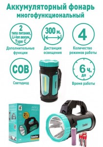 Купите товар «859897 Camelion фонарь универс. LED51527 (акк.18650 или 3xAA) 1LED+COB 3W(120lm) до300м, 4 реж, з/у Type-C» по оптовой цене с доставкой или самовывозом. В Екатеринбурге и других городах.