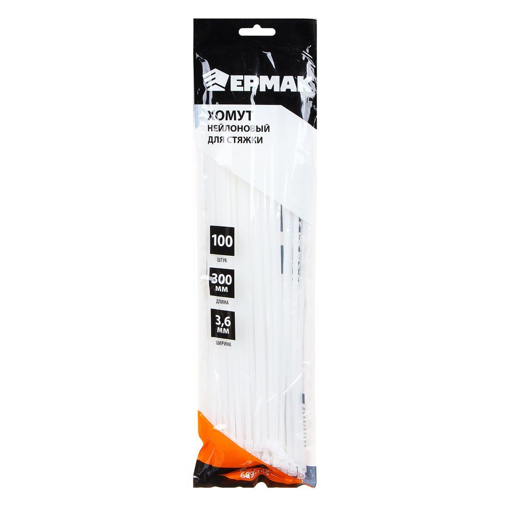 Нейлоновый хомут для стяжки ЕРМАК 3,6х300 мм белого цвета используется для фиксации, стяжки и крепления кабелей, проводов, шлангов в пучок во время монтажа электропроводки, а также для бытовых целей. Хомут прочный, долговечный, устойчив к растяжению, растрескиванию и деформации, не плесневеет. Имеет надежный замок с блокировкой. 100 штук в упаковке.