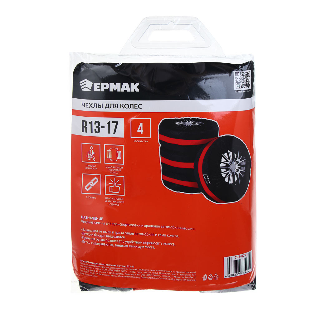 Чехлы для колес для колес радиусом R13-17 – это комплект из четырех чехлов, предназначенных для транспортировки и хранения автомобильных шин. Выполнены из прочного и износостойкого полиэстера, поэтому прослужат много сезонов. Имеют маркировку для каждого колеса, что значительно упростит монтаж сезонных шин. Эффективно предохраняют от пыли и грязи салон автомобиля и сами колеса. Легко и быстро надеваются, надежно фиксируя шины при помощи стяжек. Компактные в сложенном виде. Прочная ручка позволяет с удобством переносить колеса в случае необходимости.